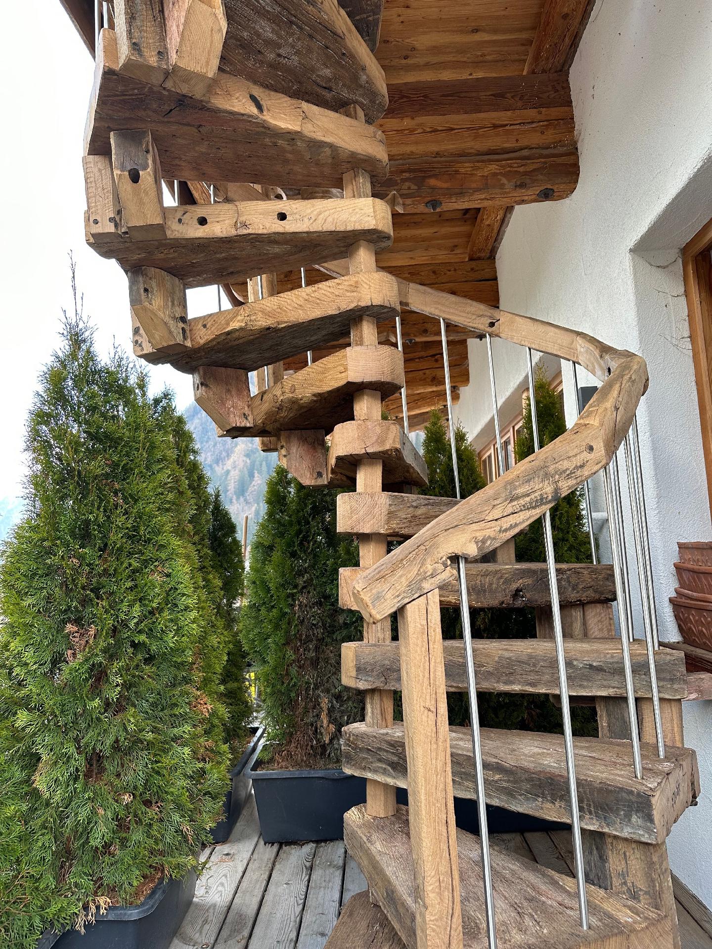 Das Studio befindet sich im ersten Stock und ist über eine leicht steile Außen-Wendeltreppe über die Balkonterrasse erreichbar. Leider ist es nicht barrierefrei zugänglich.