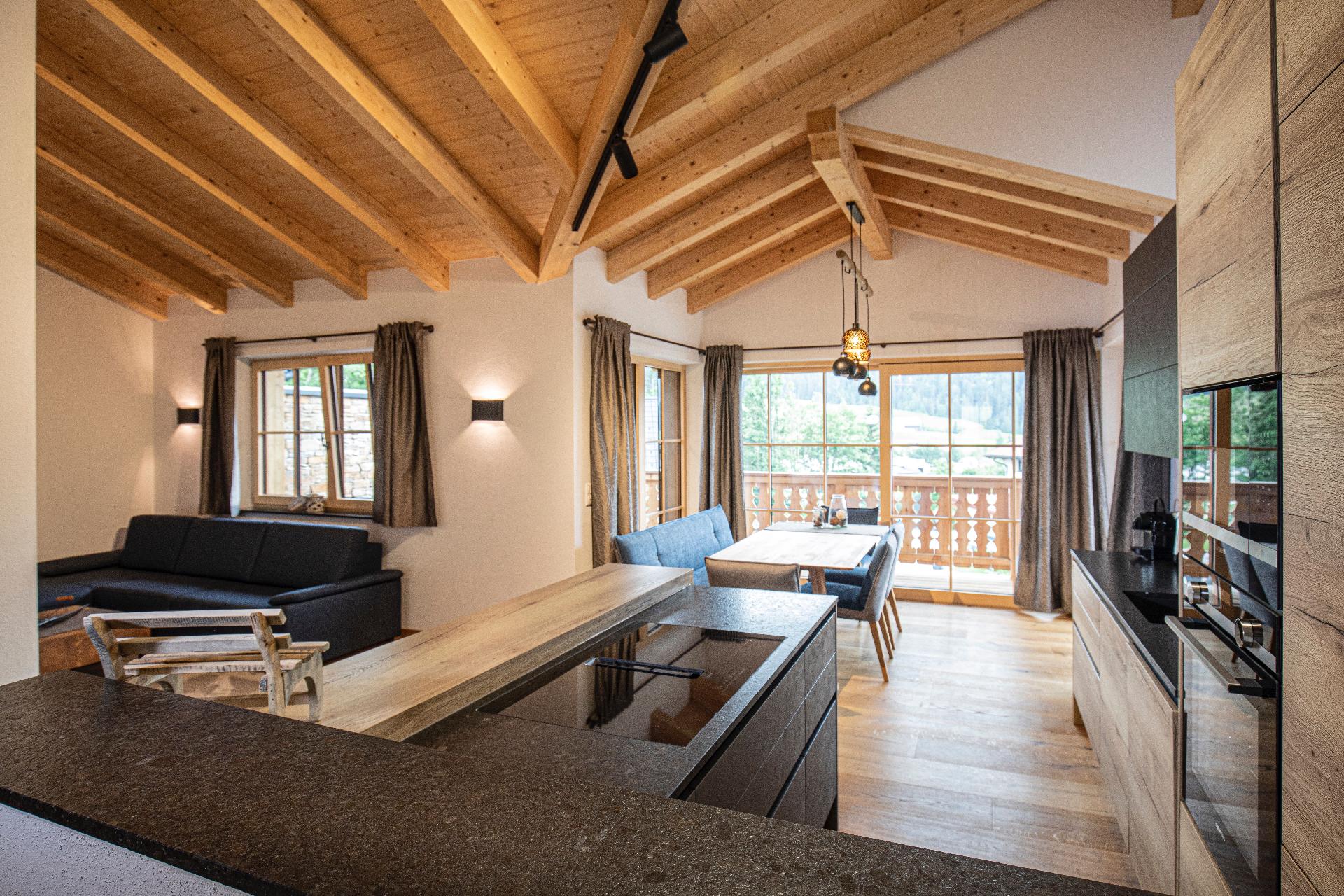 Unsere Dachstein Chalets wurden völlig neu errichtet und können entweder von größeren Gruppen als ganzes Haus für bis zu 12 Personen oder auch jeweils als abgeschlossene Etagenwohnung (Suite) für bis zu 6 Personen gebucht werden. Unter dieser Roubrik buchen Sie das ganze Haus A für bis zu 12 Personen.