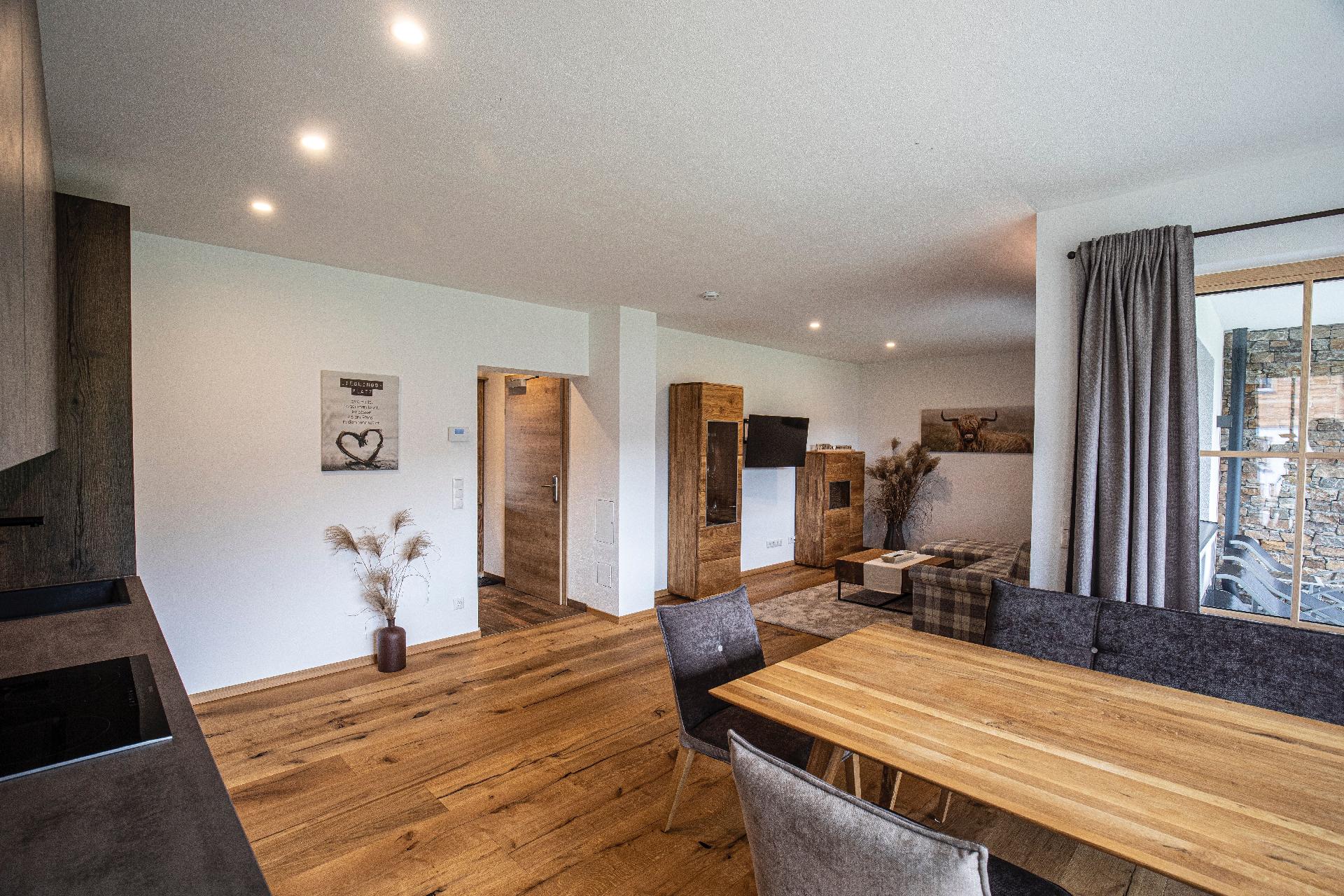 Unser völlig neues Dachstein Chalet befindet sich in einer ruhigen uns sonnigen Wohnlage, direkt an großzügigen Grünlandflächen angrenzend und mit einem herrlichen Ausblick auf Berge, grüne Wiesen, Wälder und im Winter direkt auf die Skipiste. Die Entfernung zum Skilift beträgt rund 900 meter. Das Dorfzentrum liegt rund 350 meter entfernt. In der Wintersaison fährt der Gratis Shuttlebus zum Lift bis vor das Haus und bringt unsere Gäste zum Lift und zurück.