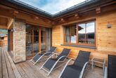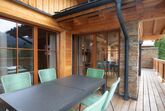 Jedes Chalet verfügt über zwei große Terrassenflächen sowie einem Zugang zum Garten. Ausserdem verfügt es über zwei Carport Stellplätze mit je einer E- Ladesäule und zwei versperrbare Abstellräume für Skier, Räder usw..