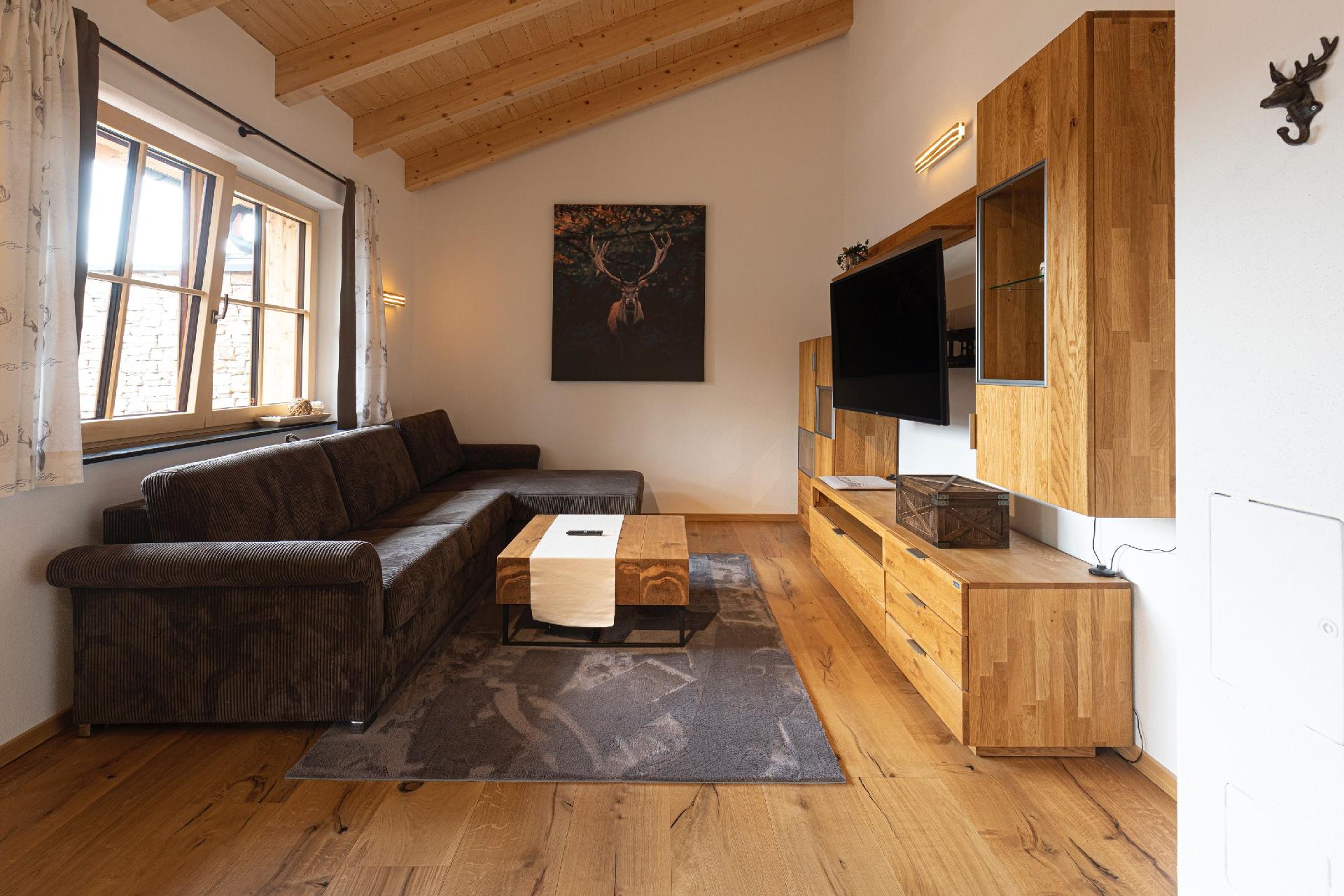 Hier buchen Sie unsere Suite BO. Sie befindet sich im OG des Hauses B, ist großzügig ausgestattet und umfasst rund 85 m2 Wnfl..