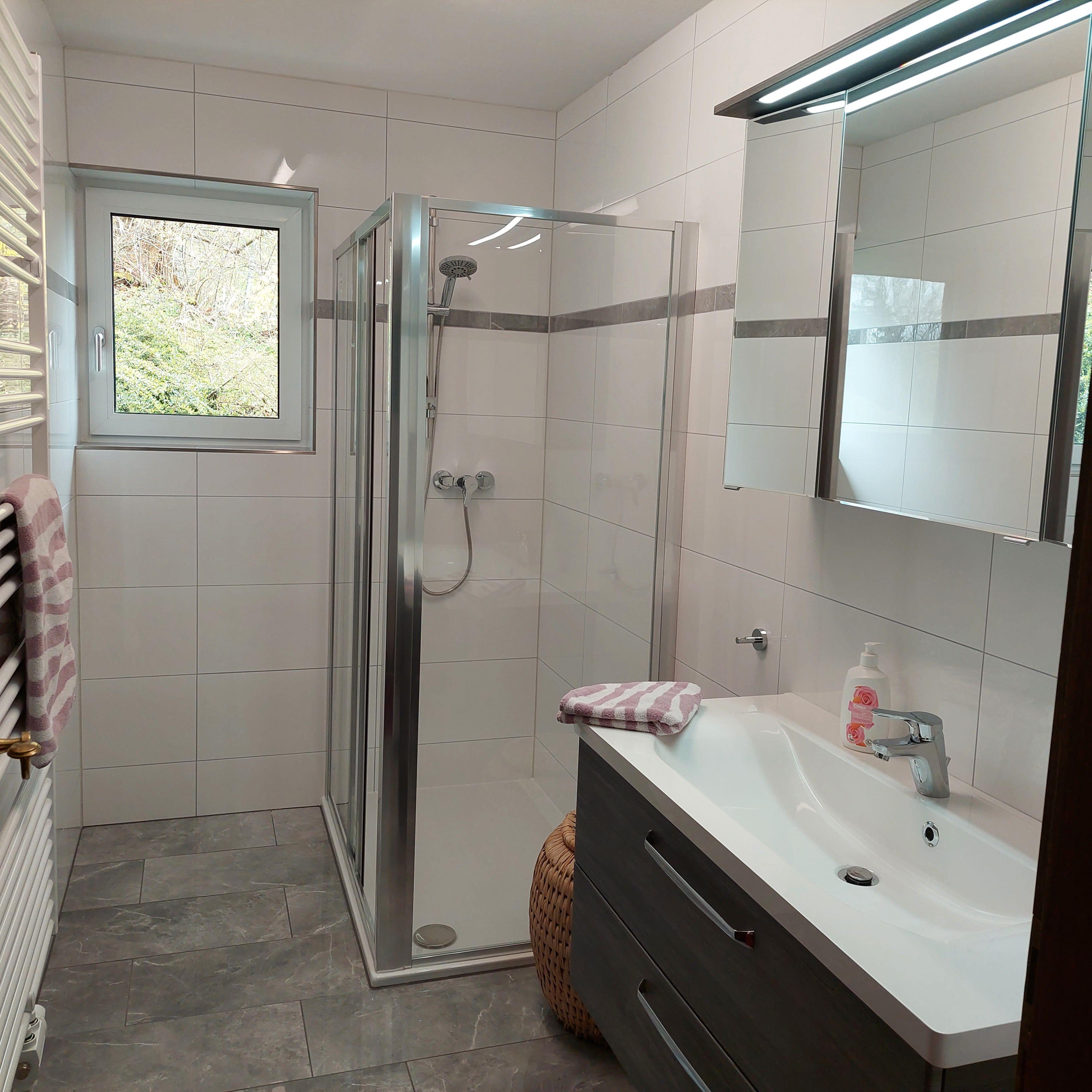 Bad/WC: Dusche; Föhn; Toilette; Toilette; Waschbecken; Waschbecken; Waschbecken