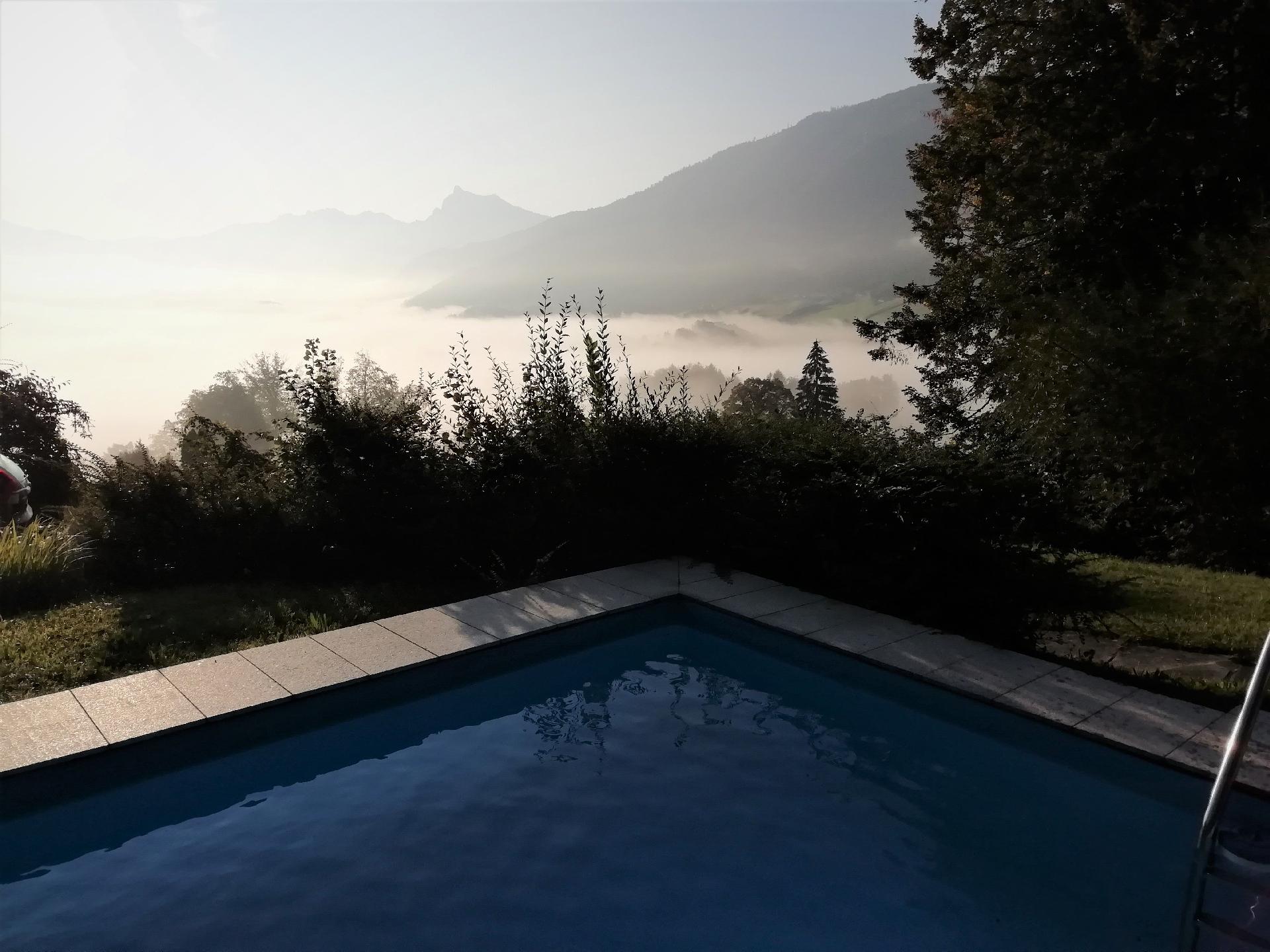 Im Sommer bietet der eigene Swimmingpool Abkühlung und gleichzeitig herrlichen Panoramablick.
