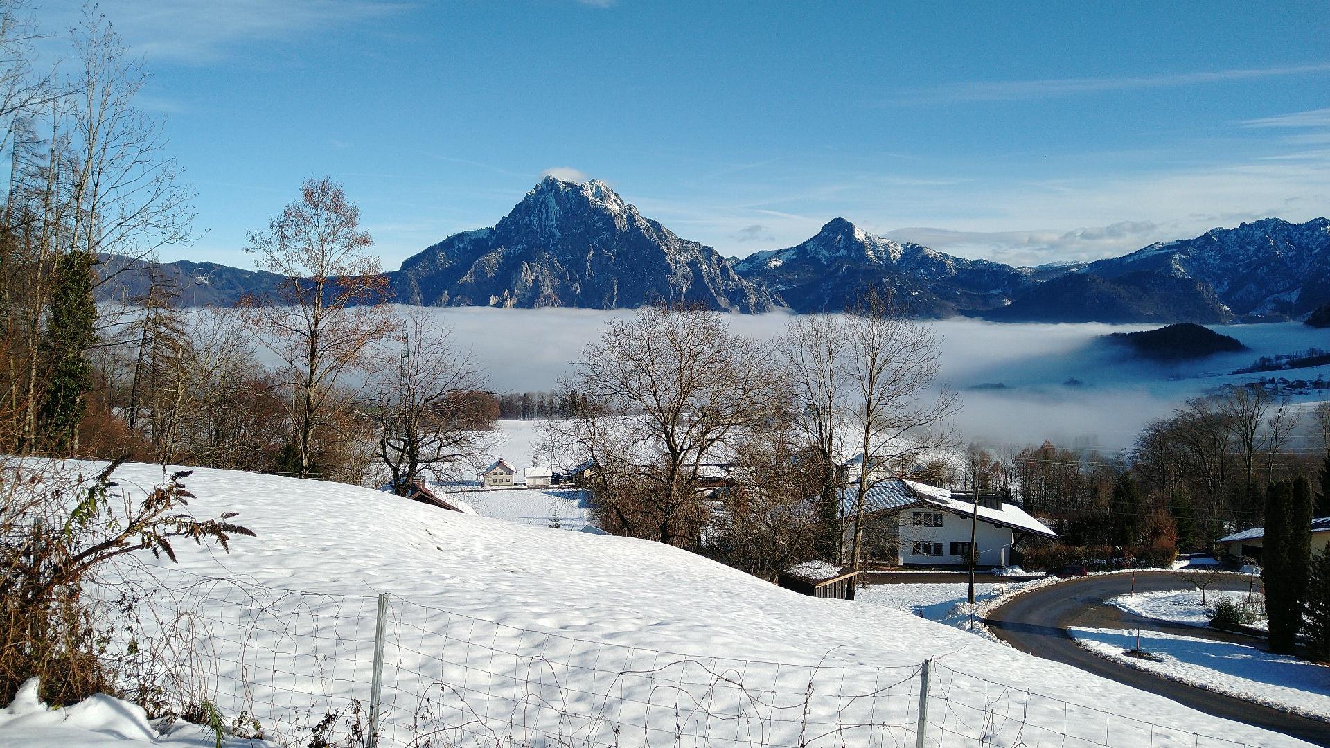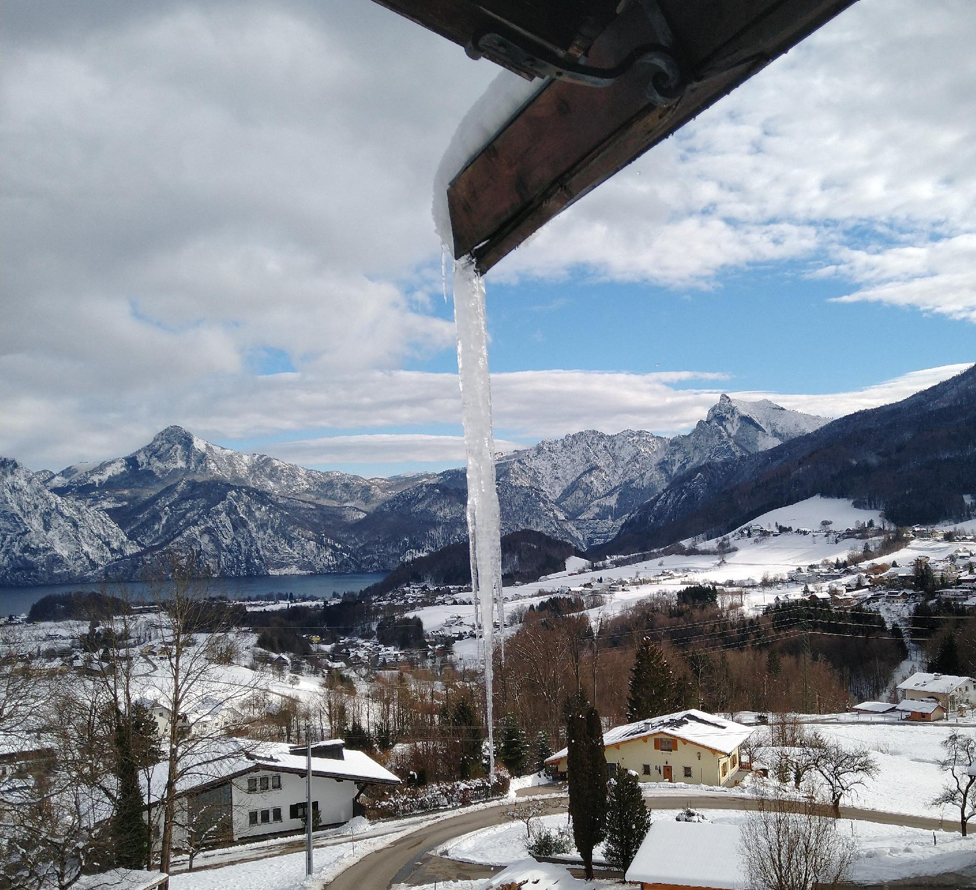 Gemütliches Landhaus mit traumhaftem Blick auf den Traunsee und die dahinter liegende Gebirgskette (Traunstein-Massiv).