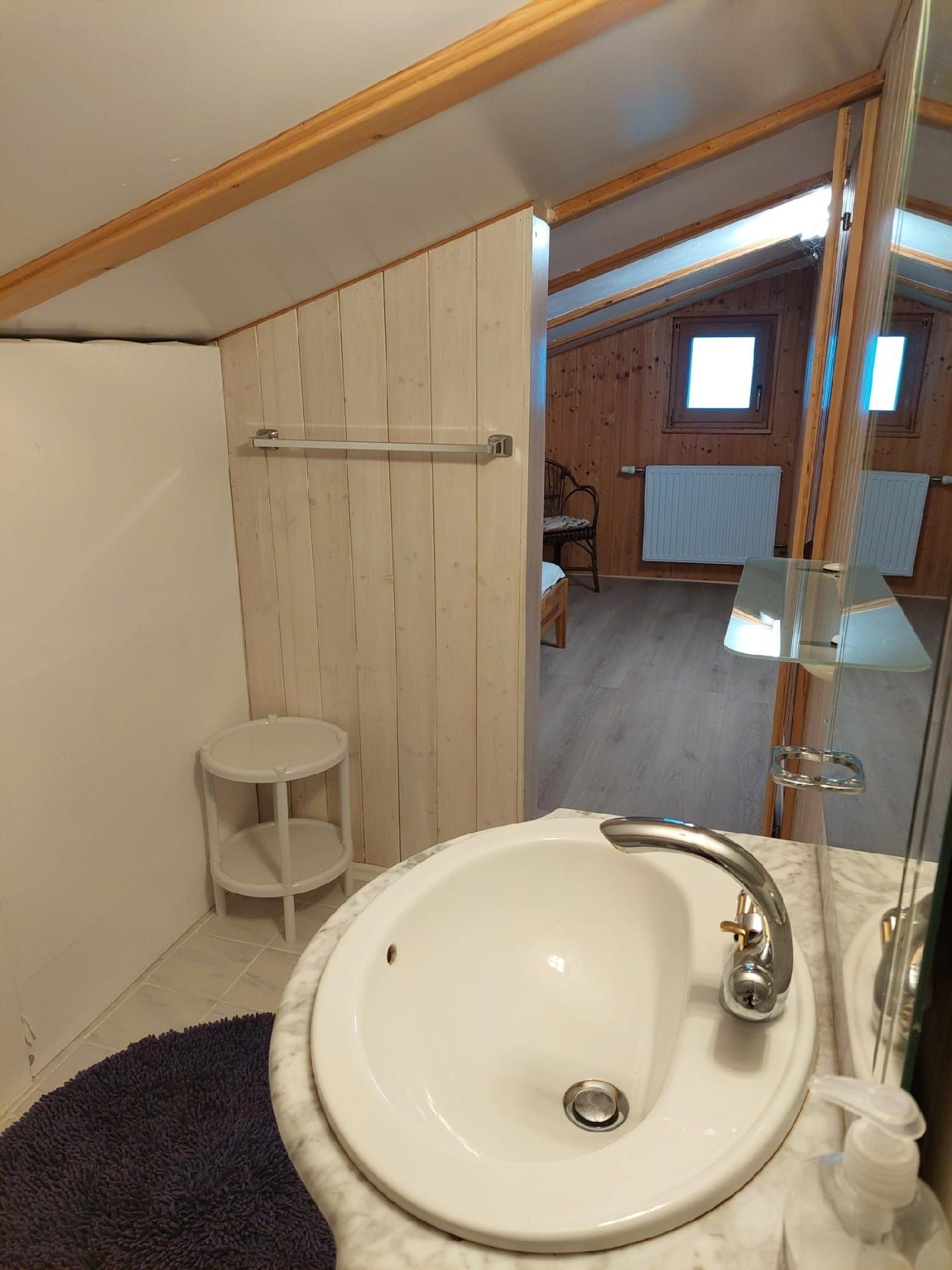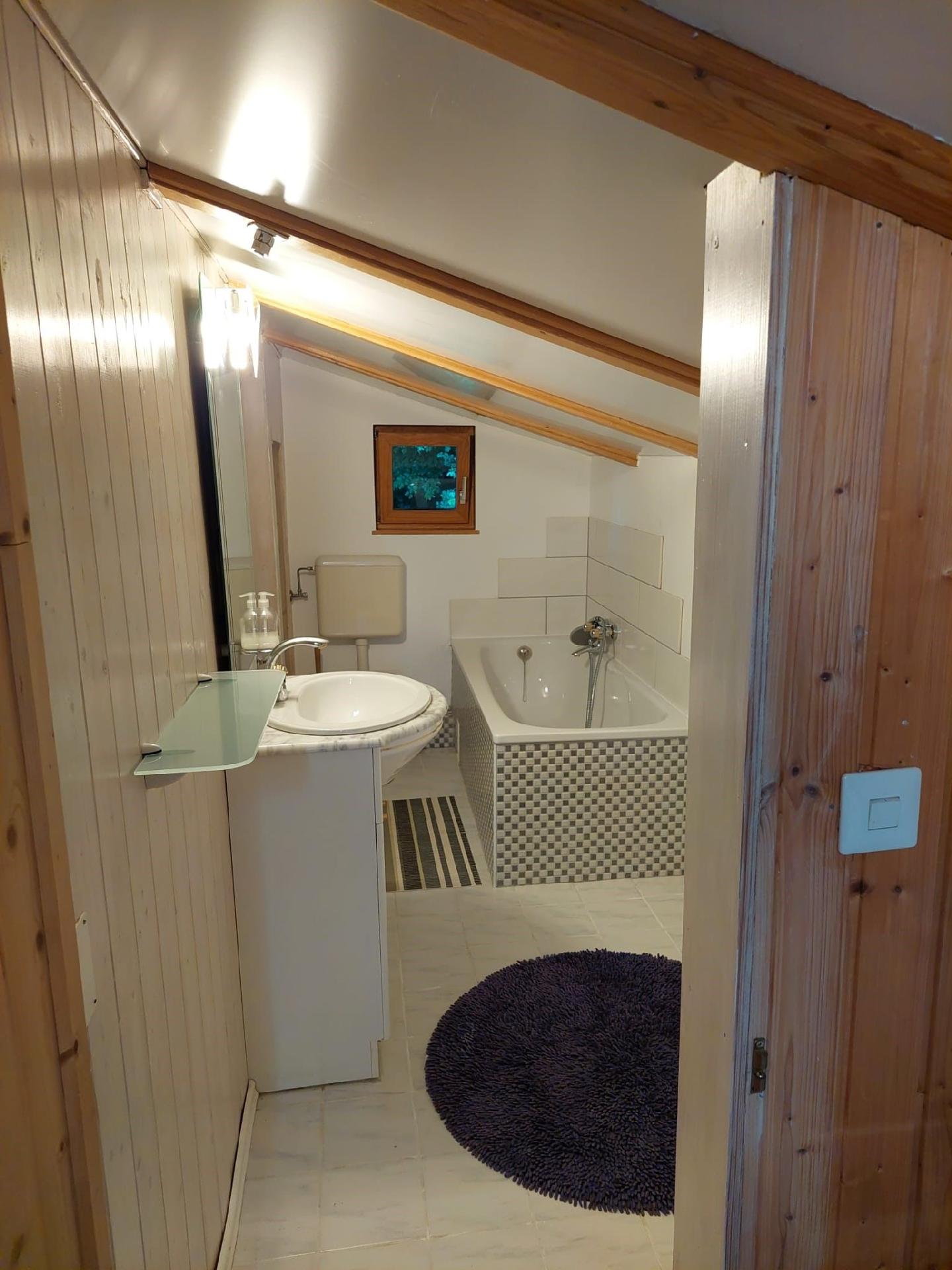 * im Dachgeschoss befindet sich ein zweites, kleineres Bad (Mansarde) mit Badewanne, Waschbecken und WC.