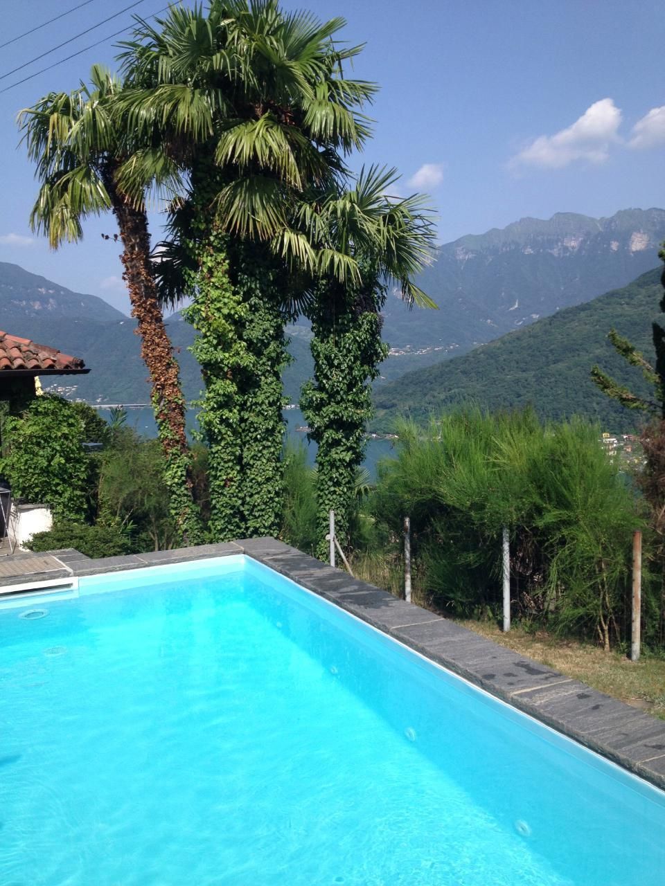 Casa Ranica, 5-Zimmer-Villa auf 2 Stockwerken, geräumig und hell, renoviert in den Jahren 2011 und 2023, komfortabel und stilvoll eingerichtet. Obergeschoss: 1 Zimmer mit 2 Betten (Blicke ins Grüne), 1 Zimmer mit 1 Doppelbett (Seesicht), Dusche/Badewanne, separates WC. Wohn-/Esszimmer mit Panoramafenster, Esstisch, Sat-TV (Flachbildschirm), Radio, CD, Stereoanlage und DVD. Ausgang zum Garten, zur Terrasse, zum Gartensitzplatz, zum Schwimmbad. Neue Küche mit Backofen, Geschirrspüler, 4 Glaskeramikherd Platten, elektrische Kaffeemaschine, Dampfgarer. Untergeschoss: 1 Zimmer mit 2 Betten, ist ein Zimmer, das im Teil des Hauses liegt, der in den Hang gebaut ist (ohne Aussicht, hohes Fenster, dafür im Sommer schön kühl, im Winter beheizt). 1 Zimmer mit 1 Doppelbett mit Blick ins Grüne. Dusche mit WC. Natursteinböden. Heizung. Terrasse 15 m2, grosser Gartensitzplatz 50 m2, teilweise überdacht, grosser Garten 500m2, Laube. Terrassenmöbel, Balkonmöbel, Gartengrill, Liegestühle (8). Herrliche Panoramasicht auf den See, die Berge, das Schwimmbad, den Garten, die Landschaft und die Ortschaft. Zur Verfügung: Waschmaschine, Wäschetrockner, Bügeleisen, Kinder-Hochstuhl, Babybett (extra), Haartrockner. Internet (Wireless LAN). IPod docking station. Bitte beachten: geeignet für Familien. Nichtraucher-Haus. Garage nicht verfügbar. Kaffeemaschine: Lavazza, Kapseln können vor Ort gegen Gebühr bezogen werden.