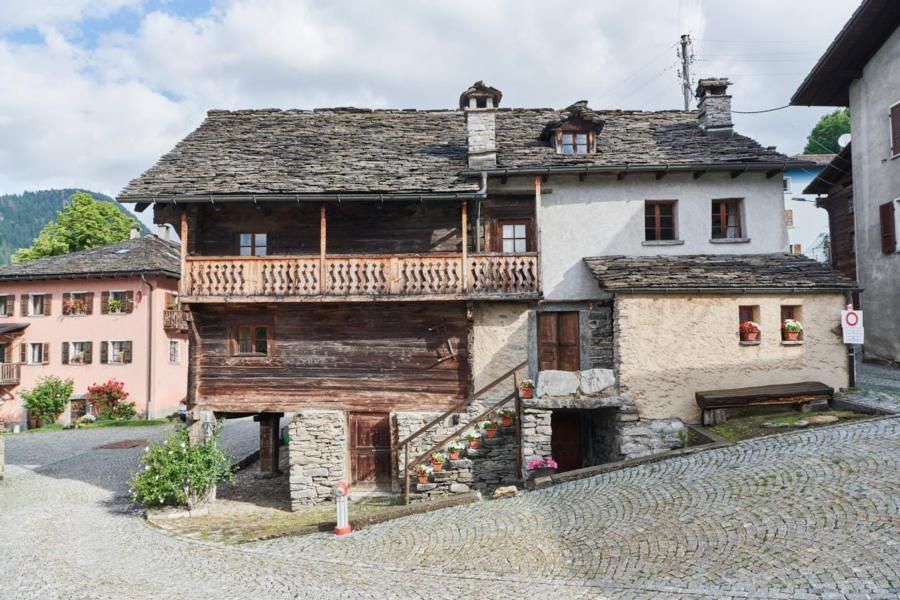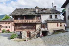 Garten: Der gedeckte Vorplatz  steht den Feriengäste zur Nutzung zur Verfügung. Das Haus liegt direkt am Dorplatz von Calonico und so kann direkt am Dorfleben teilgenommen werden.