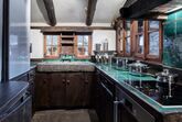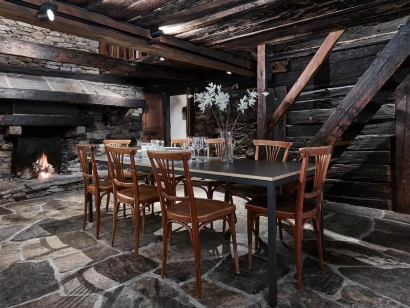 Sonstige Wohnzimmerausstattung: Das haushohe Kaminzimmer bildet das Zentrum des Hauses und ist mit einem Esstisch für 10 Personen ausgestattet.