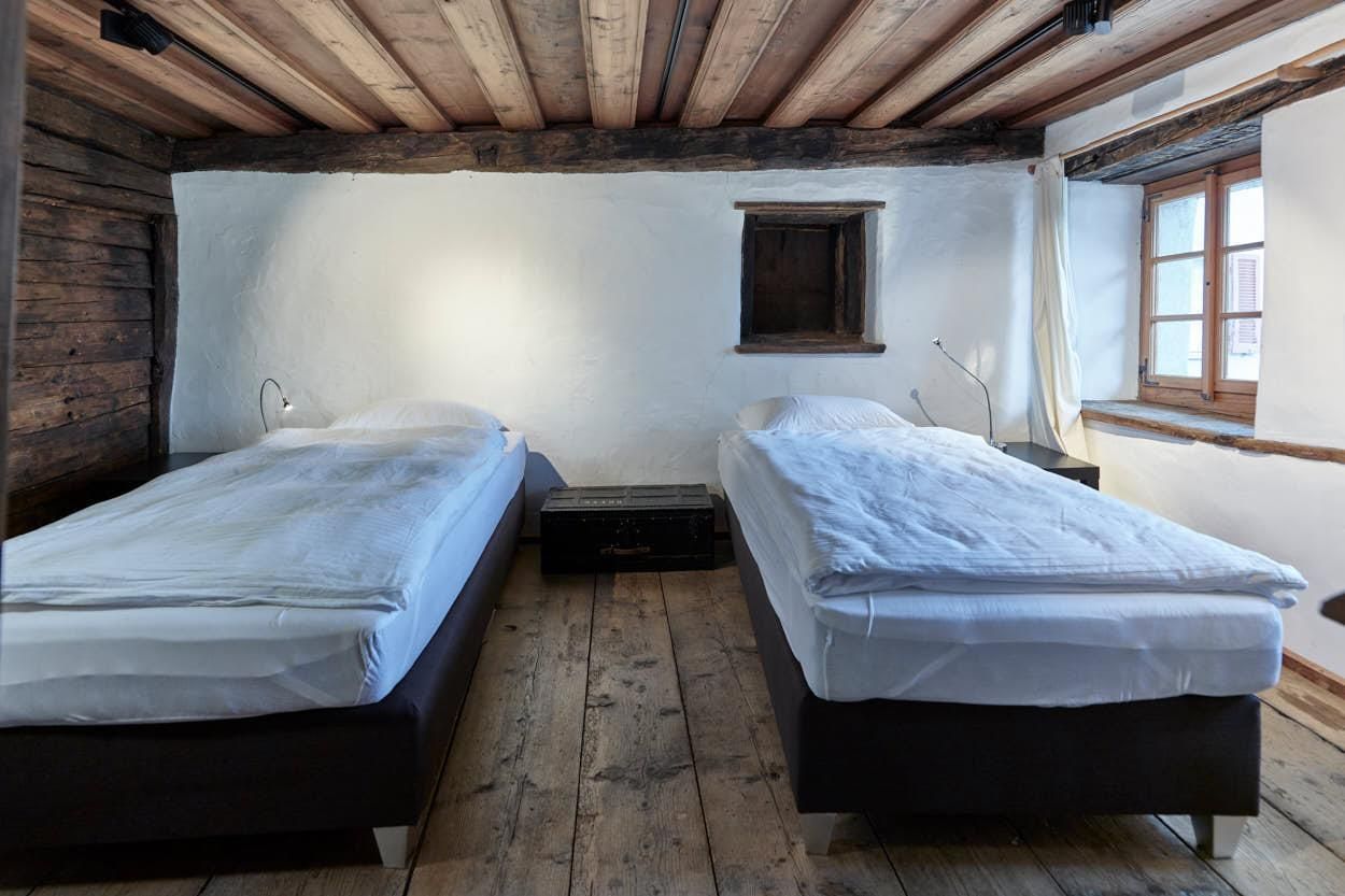 Casa Regina ist ein Baudenkmal, das mit grosser Rücksicht auf die vorhandene Substanz renoviert worden ist. Der Mieter ist sich dessen bewusst und begegnet dem Objekt mit Sorgfalt. Obwohl im Übrigen technisch zeitgemäss ausgestattet, entsprechen gewisse funktionelle Details heute gängigen Normen nicht und bergen eine allfällige Gefahrenquelle. Insbesondere sei darauf hingewiesen, dass das Betreten des offenen Estrichbereich auf eigene Gefahr geschieht. Diese Umstände sind dem Mieter bekannt. Der Eigentümer, e-domizil und die Stiftung Ferien im Baudenkmal lehnen jede Haftung ab.