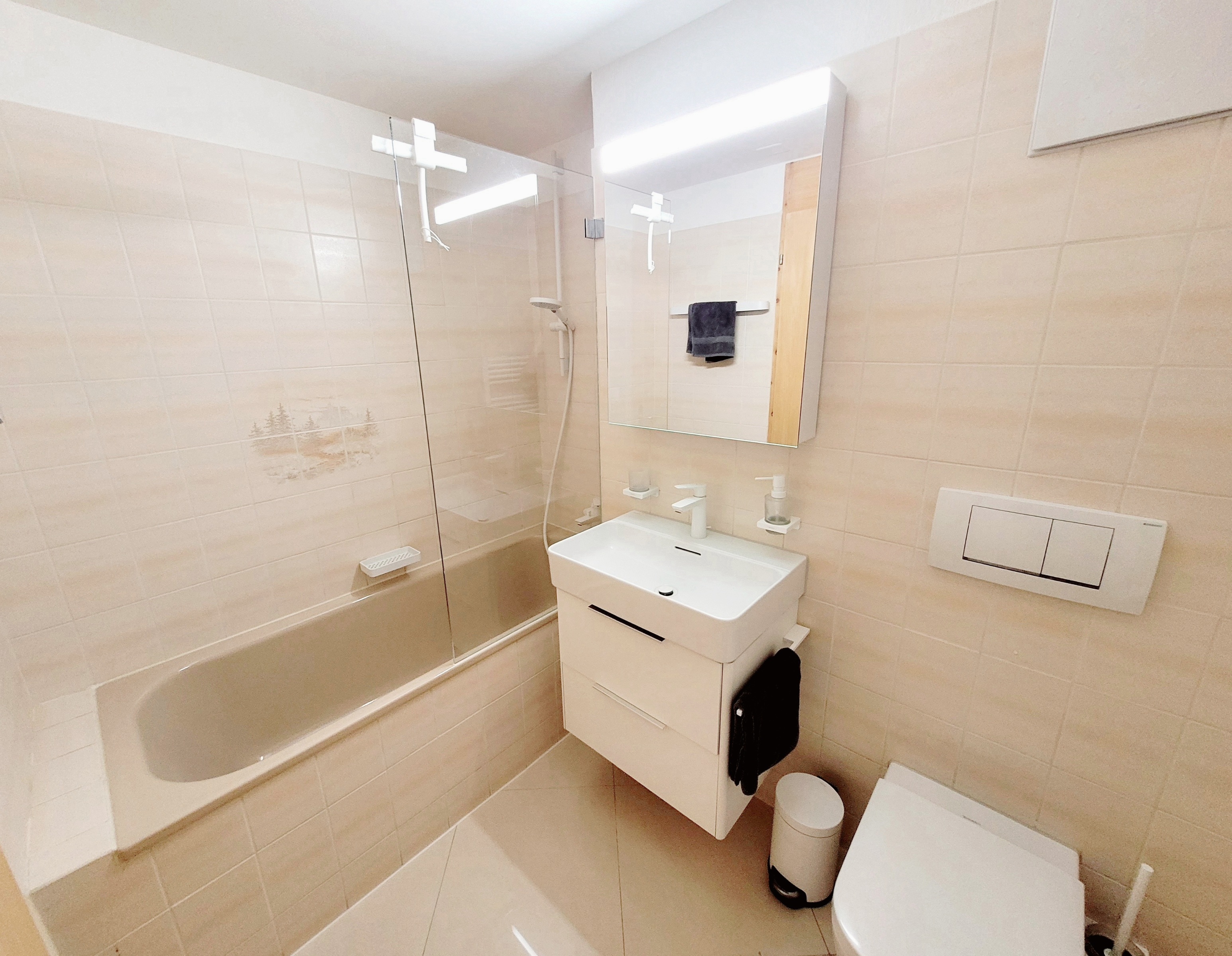 Wunderschöne und ruhig gelegene 3.5 Zimmerwohnung (ca. 60 m2) mit Wohlfühlgarantie und Weitblick! Die Wohnung wurde in 2023 (Bad) renoviert, frisch gestrichen und komplett neu möbliert.Im Winter 2024 wurde die Küche erneuert und mit Geräten der Marke VZug ausgestattet. Aus dem Kinderzimmer, dem Wohnzimmer und vom Balkon haben Sie eine freie, unverbaute Bergsicht mit unvergesslichem Blick auf die Signina-Bergkette, sowie auf Flims-Dorf. 3,5 Zimmer: 2 Schlafzimmer mit 1 Boxspring-Doppelbett (1.80 m x 2m) und 2 Einzelbetten je 90cm x 2m, 1 Bad mit WC und Bade/Duschkombination; Waschmaschine / Trockner im Haus (gebührenpflichtig), Skiraum, TV, Wifi (kostenfrei). Die Fenster der beiden Schlafzimmer sowie der Küche sind mit Mückennetzen ausgestattet. Die Küche ist komplett ausgestattet und verfügt über neue Markenelektrogeräte. Der Parkplatz Nr. 21 gehört exklusiv zur Wohnung und befindet sich oberhalb vom Haus - über eine Treppe zu erreichen. Er ist im Mietpreis inklusive. Da kein offizieller Veloraum vorhanden ist, haben wir im Skiraum 2 Velohänger installiert. die Wohnung wird nach Covid-19-Leitfaden der Flims Laax Falera Management AG gelüftet, gereinigt und desinfiziert *