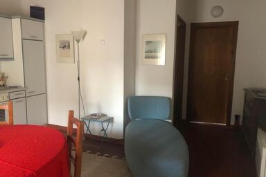 1 ½-Zimmer-Wohnung 33 m2, 4. Stock, schöner Balkon mit Esstisch und direkter Seesicht. Hell, komfortabel, modern und vollständig renoviert und neu eingerichtet. Offenes Wohn-/Esszimmer mit Doppelbett (160x 180)
