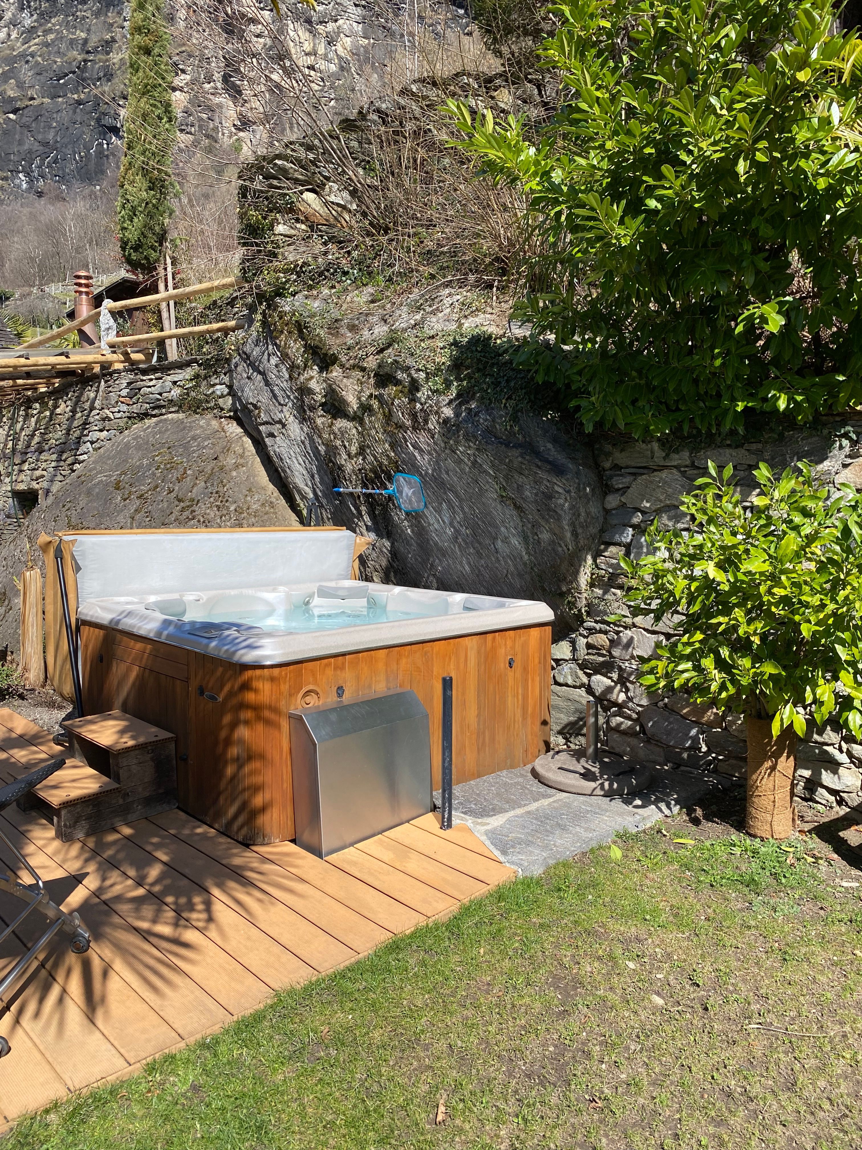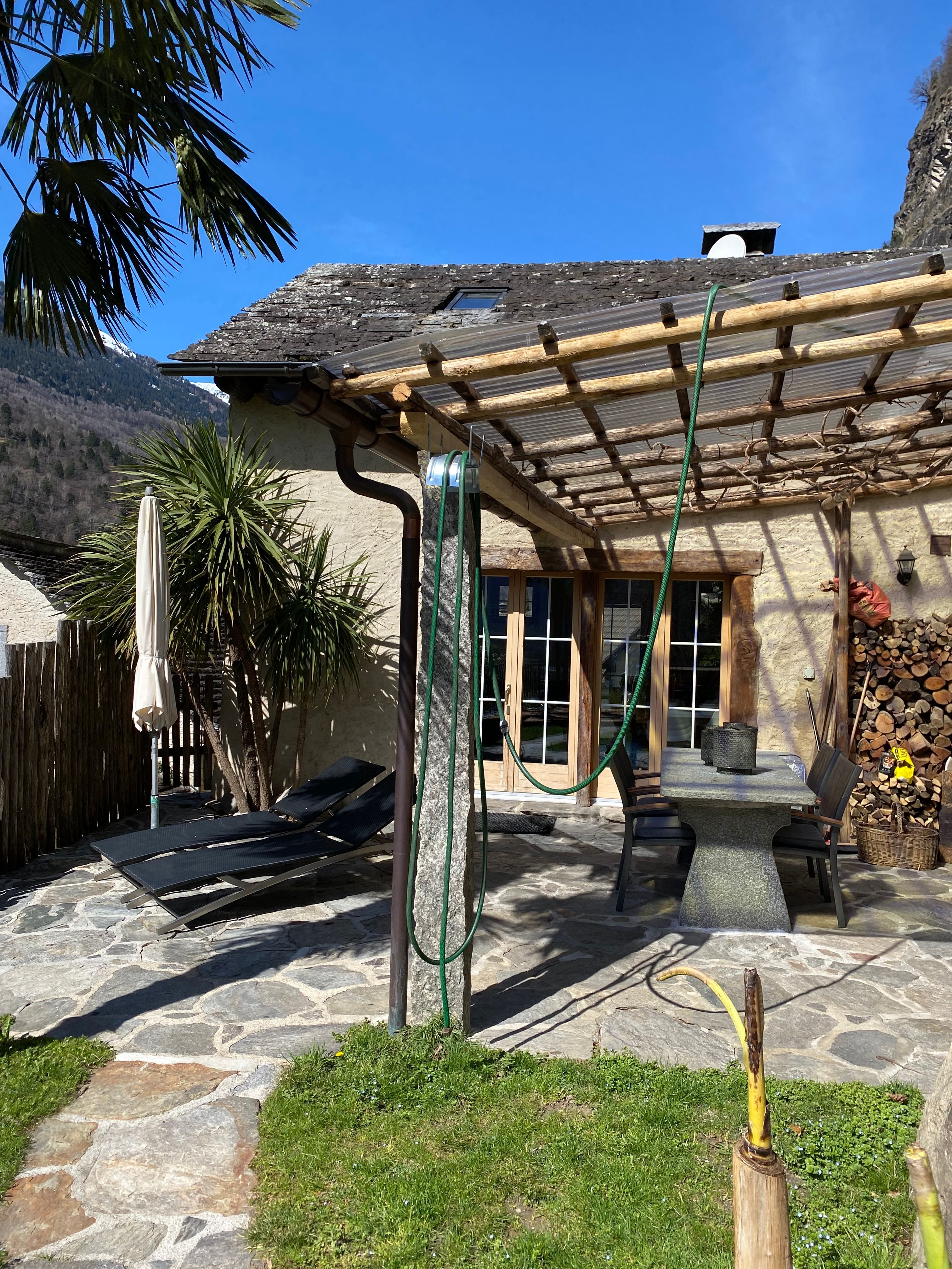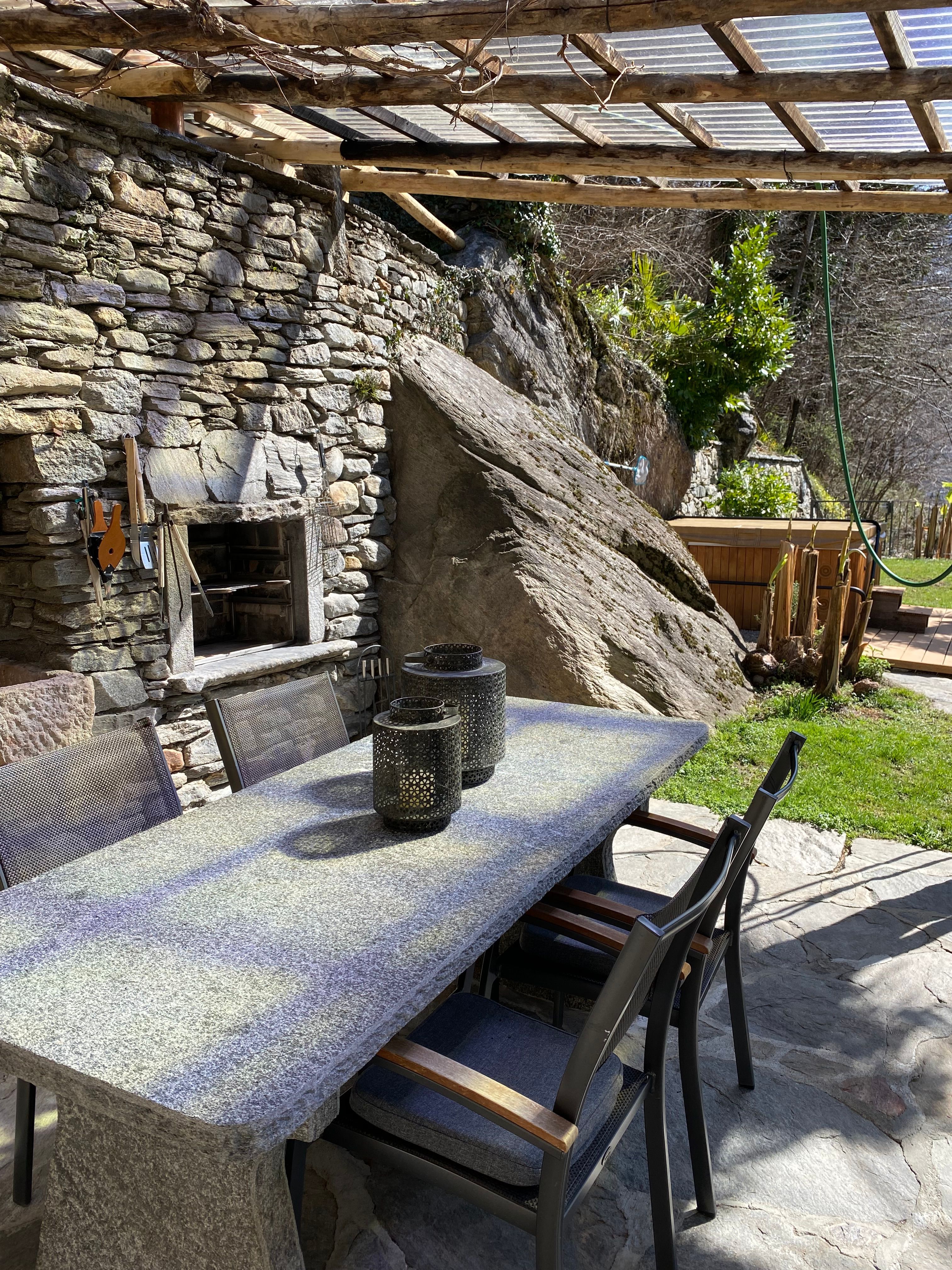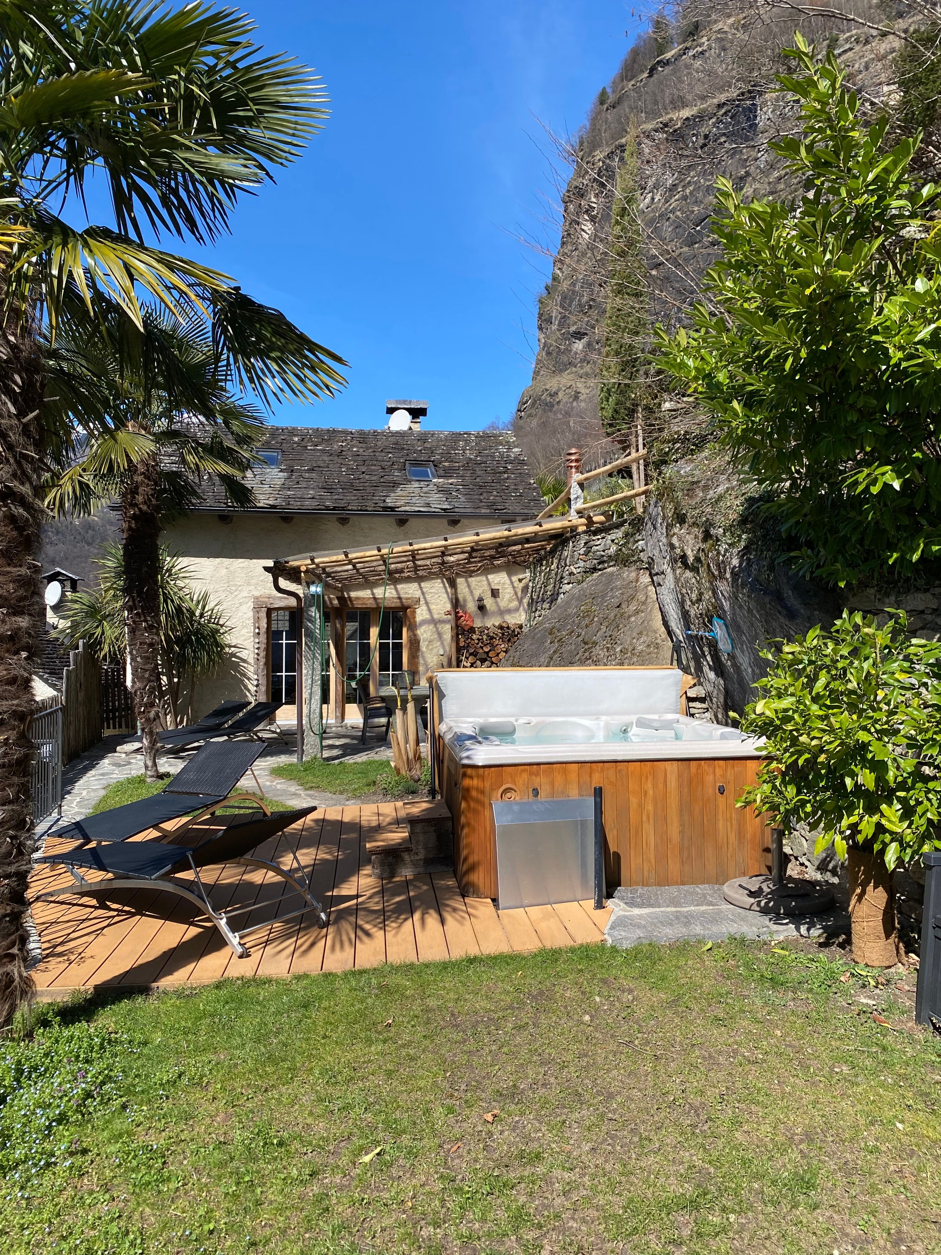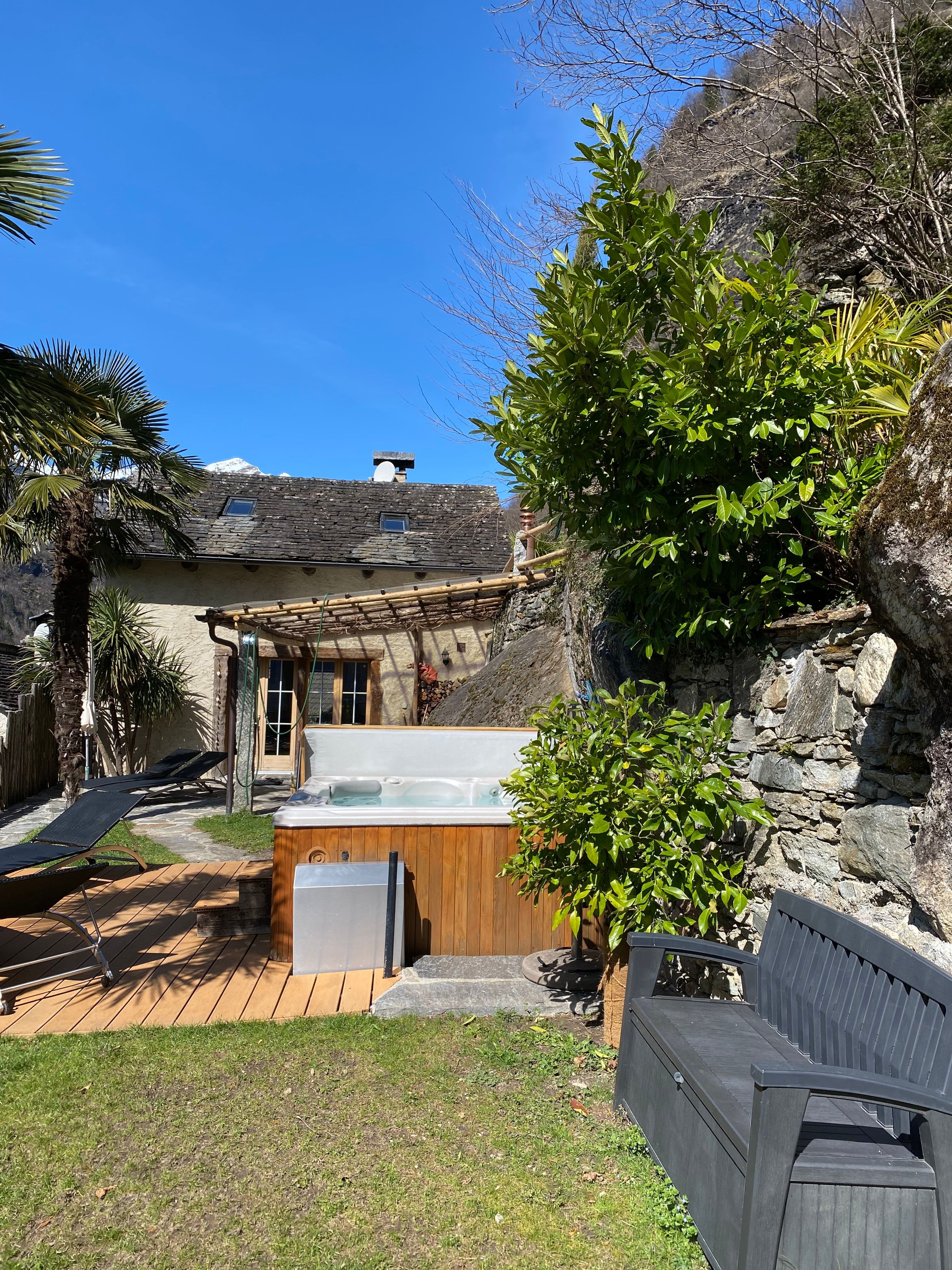 Neu ausgebauter Top - Rustico, komfortabel u. stillvoll eingerichtet, schöner Garten mit Panoramasicht, Aussencheminée, Pergola, befindet sich im schönen alten Dorfteil von Dongio (Val Blenio), Dongio liegt im oberen Tessin 8 Km von Biasca Richtung Lukmanier-Pass, sehr viele Wandermöglichkeiten, baden am Fluss, Skifahren, Langlauf, Bergtouren od. einfach die Seele baumeln lassen, ideal auch mit Hund, viele Spaziermöglichkeiten u. überall grössere od. kleinere Flüsse sei es zum Wasser trinken oder ein kühles Bad zu nehmen. Im uneinsehbaren Garten befindet sich ein beheizbarer Whirlpool mit Massagedüsen (das ganze Jahr in Betrieb, auch im Winter). Aussensauna, 4 Plätze.