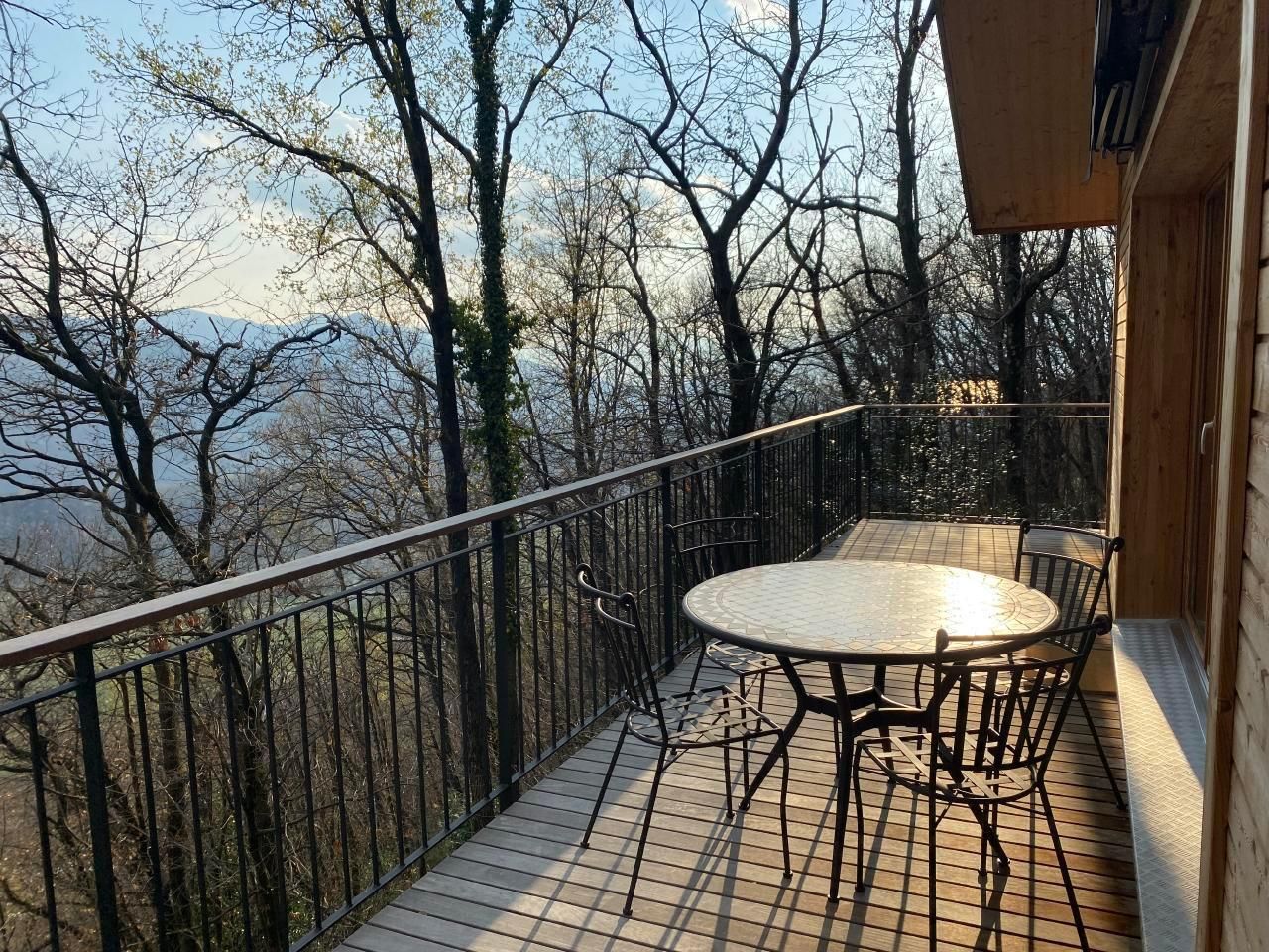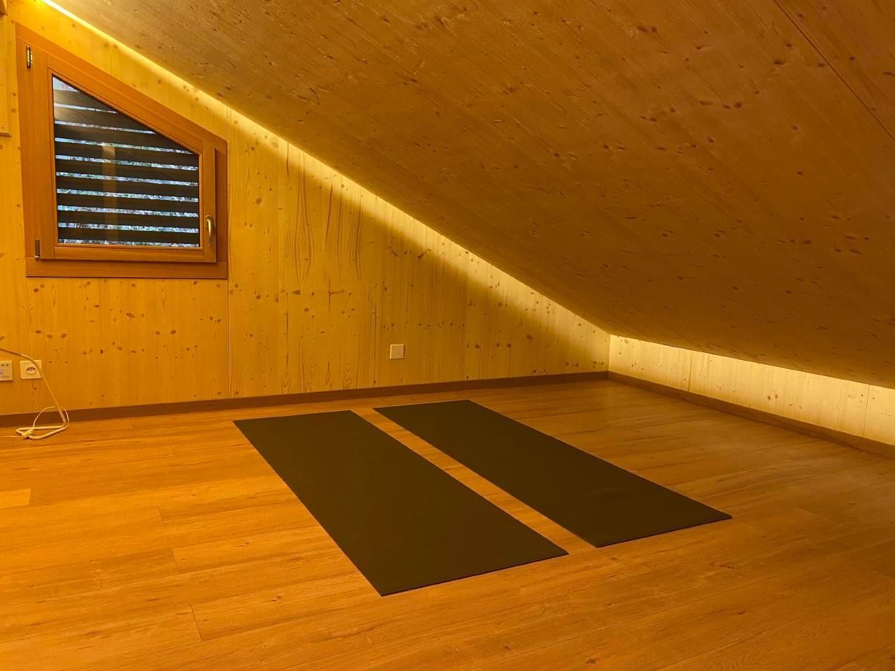 Die Unterkunft: Der Dachboden kann zur Meditation oder als zusätzlicher Schlafbereich genutzt werden. (Yoga-Matten vorhanden) Der Außenbereich verfügt über eine große Terrasse mit wertvollem Mosaiktisch und Sonnenschirm sowie einen Grill hinter dem Haus im Freien. Es gibt viel Holz für den Kamin und Holzkohle für den Grill.