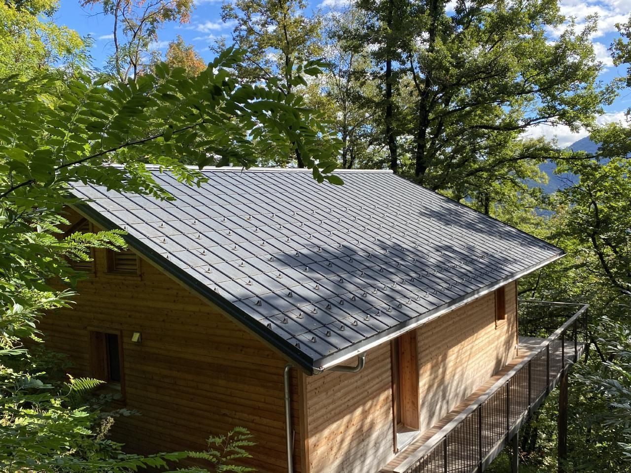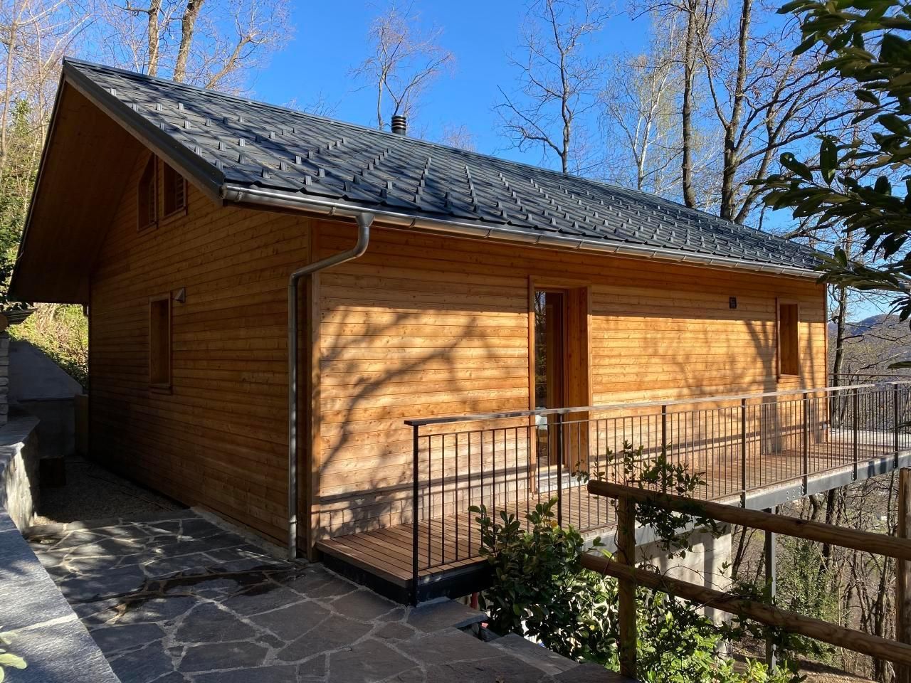 Dieses komfortable Chalet mit vielen Annehmlichkeiten befindet sich mitten im Wald von Malcantone. Terrasse bietet einen schönen Blick auf die Baumwipfel. Die Zufahrt führt über eine Naturstrasse durch den Wald.