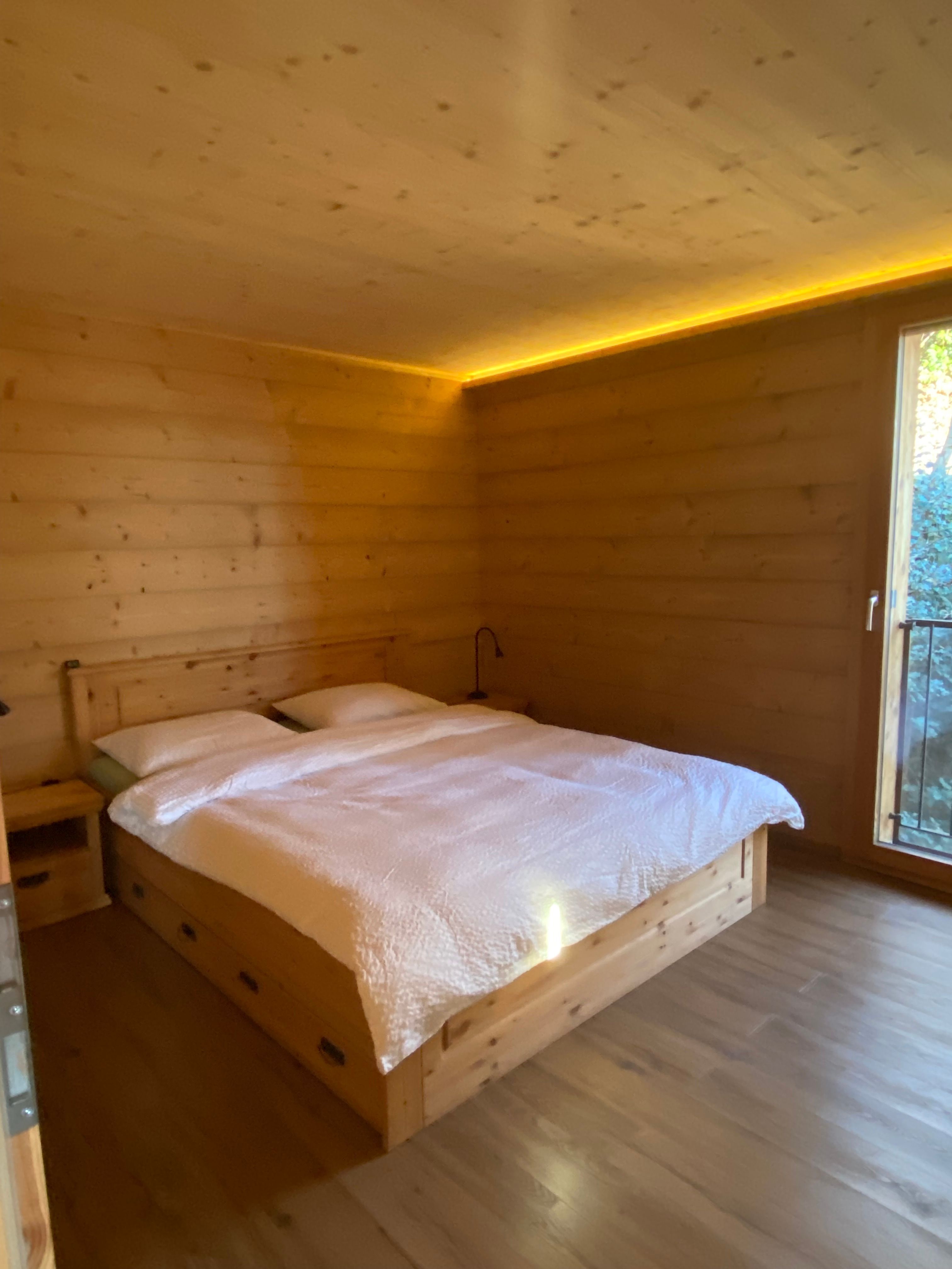 Neu gebautes romantisches Versteck im Wald. Ein modernes Loft-Chalet mit 2 Schlafzimmern für 4-6 Personen. (Kinder ab 12 Jahren) Hunde mit Zustimmung des Eigentümers grundsätzlich willkommen.