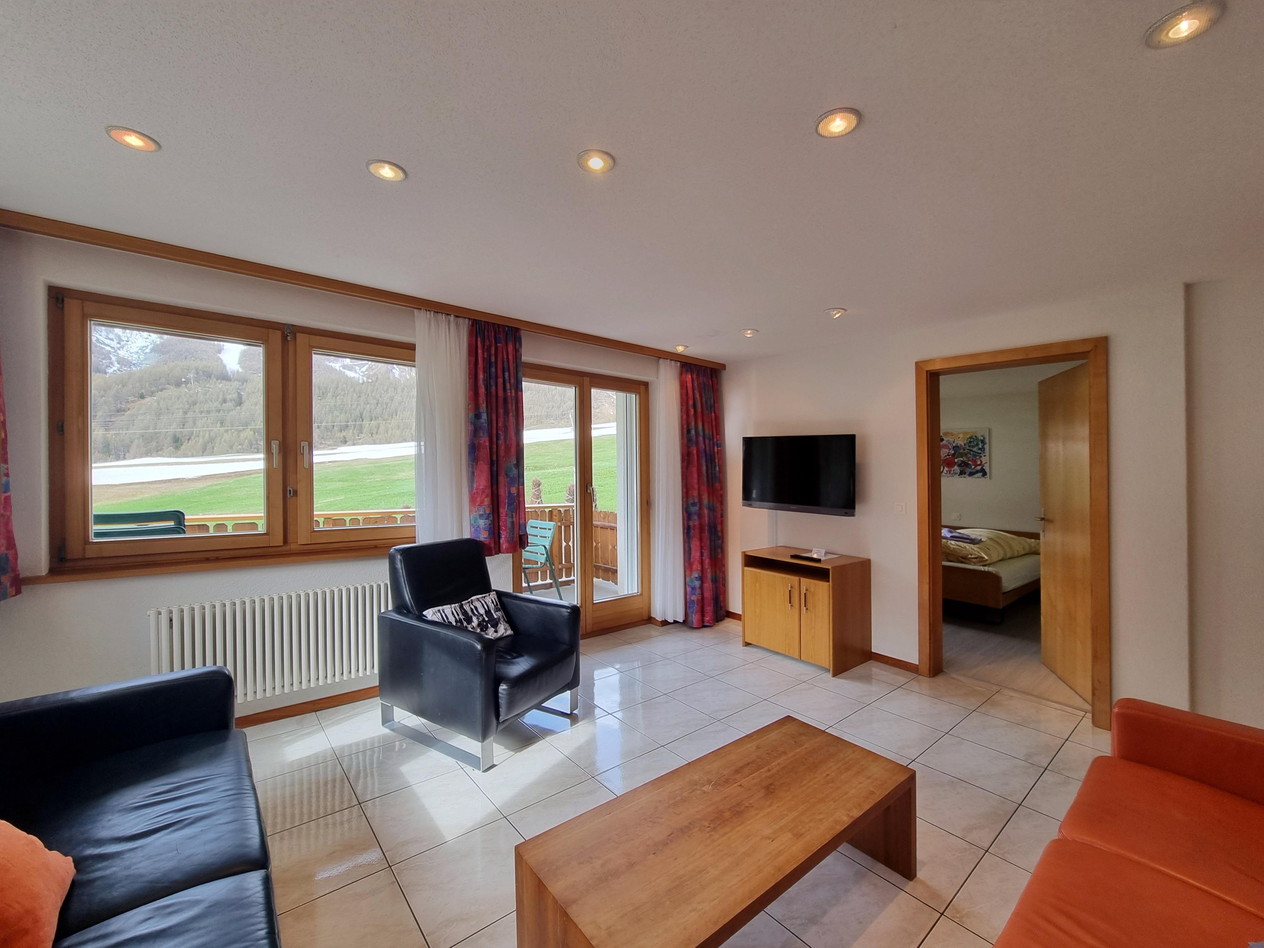 Südlich ausgerichteter Balkon mit fantastischer Aussicht über die Skipiste & Berge