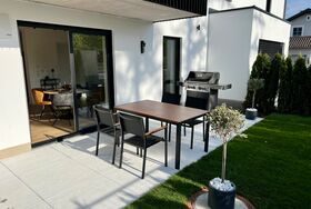 Eine nach Westen hin ausgerichtete Terrasse mit Grill und kleinem Gartenanteil macht die Wohnung perfekt, um hier eine ruhige Auszeit zu genießen. Die Wohnung befindet sich im Zentrum von Prien mit vielen Cafes, Restaurants und Einkaufsmöglichkeiten in der Nähe. Das Chiemseeufer  ist mit einer Entfernung von nur 1,2 km auch schnell und einfach zu erreichen.