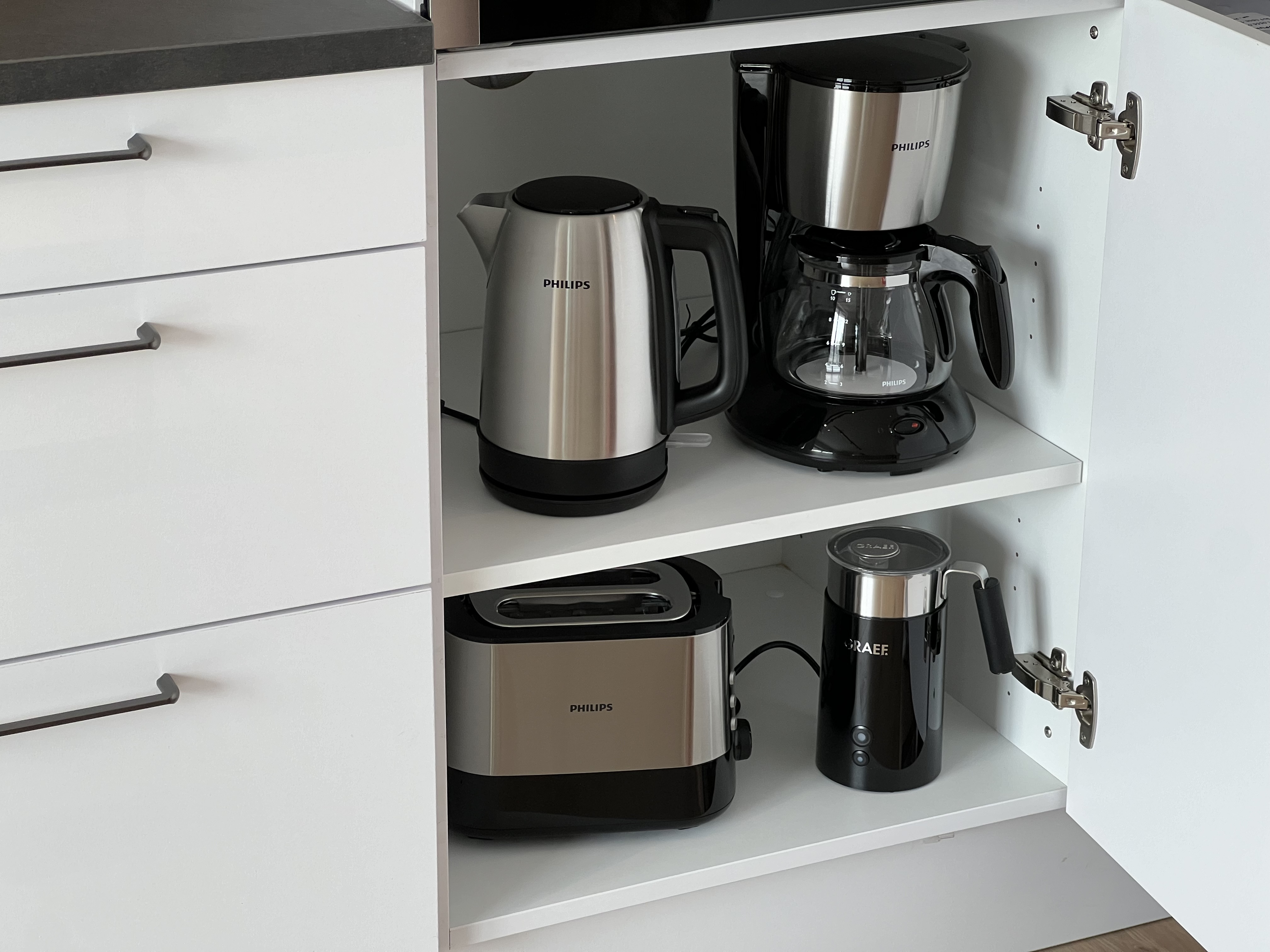 Das gemütliche Schlafzimmer ist mit einem großen Boxspringbett (180x200 cm) ausgestattet und bietet viel Stauraum um den Koffer auszupacken. Die Wohnung verfügt außerdem über ein Bad mit ebenerdiger Regendusche. Alle Fenster sind mit Außenrollos ausgestattet und ermöglichen somit eine optimale Verdunklung. Im großen und hellen Wohn-Essbereich befindet sich eine Schlafcouch, die beispielsweise perfekt für bis zu zwei Kinder geeignet ist und ein Fernseher. Die voll ausgestattete Küche beinhaltet eine Spülmaschine, Kühlschrank, Herd, Backofen, Filterkaffeemaschine und eine Nespresso-Kaffeemaschine mit Milchaufschäumer. Vom Wohn-Essbereich gelangt man über eine Terrassentüre auf die sonnige Westterrasse mit Weber Gasgrill, Sitzgelegenheiten, Liegestühlen, Sonnenschirm und einem kleinen Kräuterbeet.