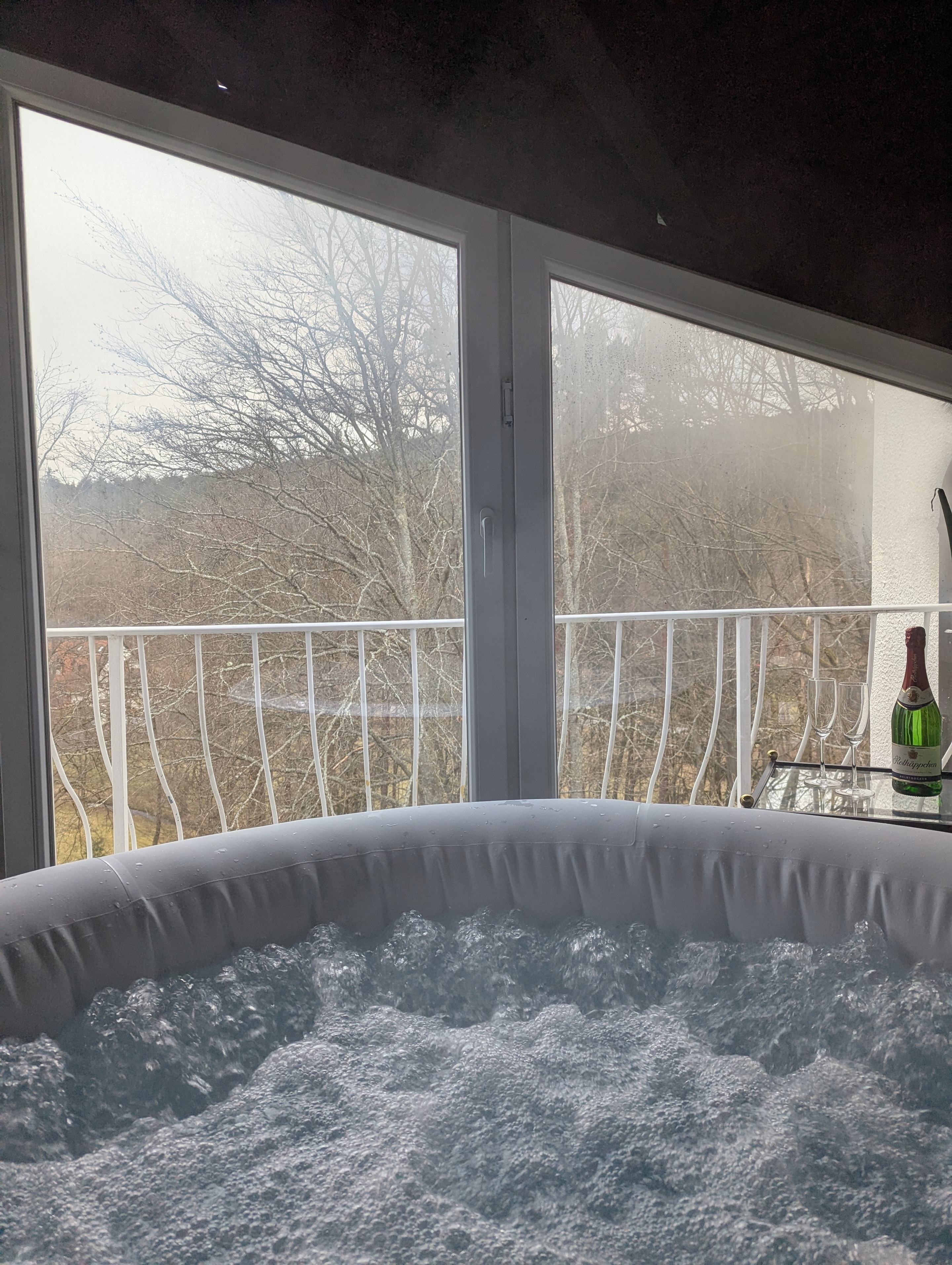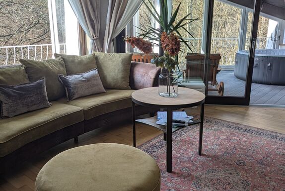 Buche jetzt die Kamin Suite und erlebe Ruhe, Komfort und private Wellness inmitten der wunderschönen Natur der Rhön!