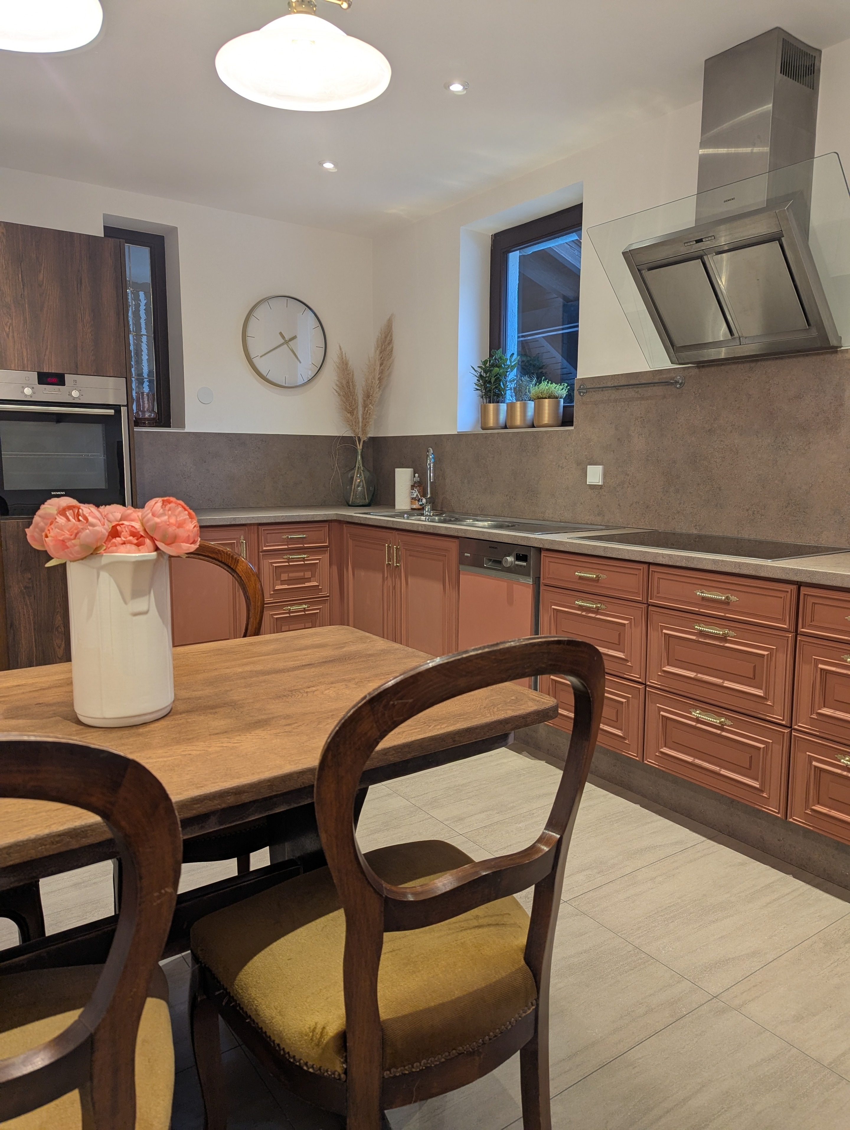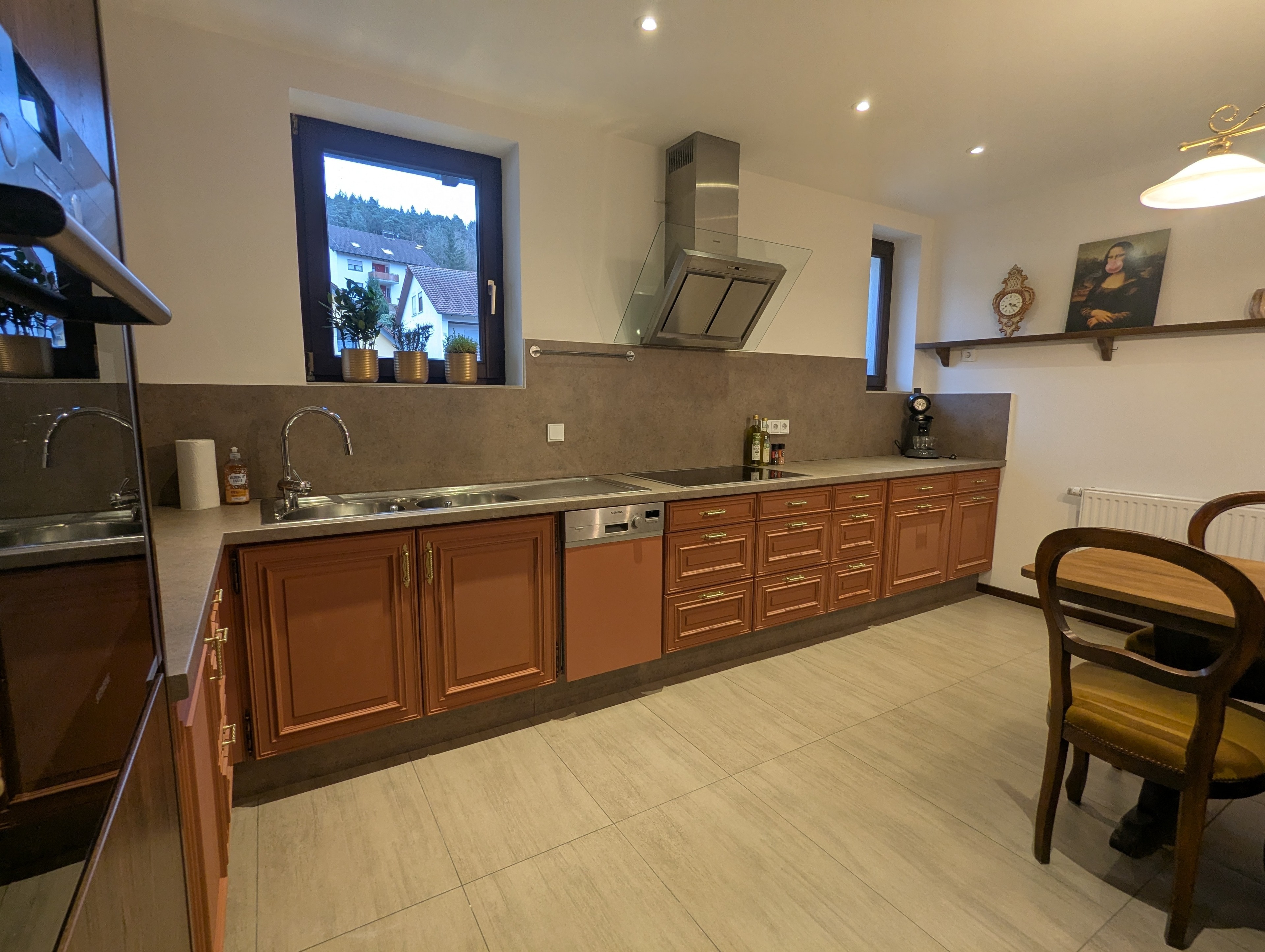 Die große, voll ausgestattete Küche bietet alles, was du zum Kochen brauchst: Herdplatten, Senseo-Kaffeemaschine, Toaster, Wasserkocher sowie Geschirr und Utensilien. Hier kannst du ganz entspannt köstliche Mahlzeiten zubereiten. Der gemütliche Essbereich lädt zu gemeinsamen Mahlzeiten in angenehmer Atmosphäre ein.