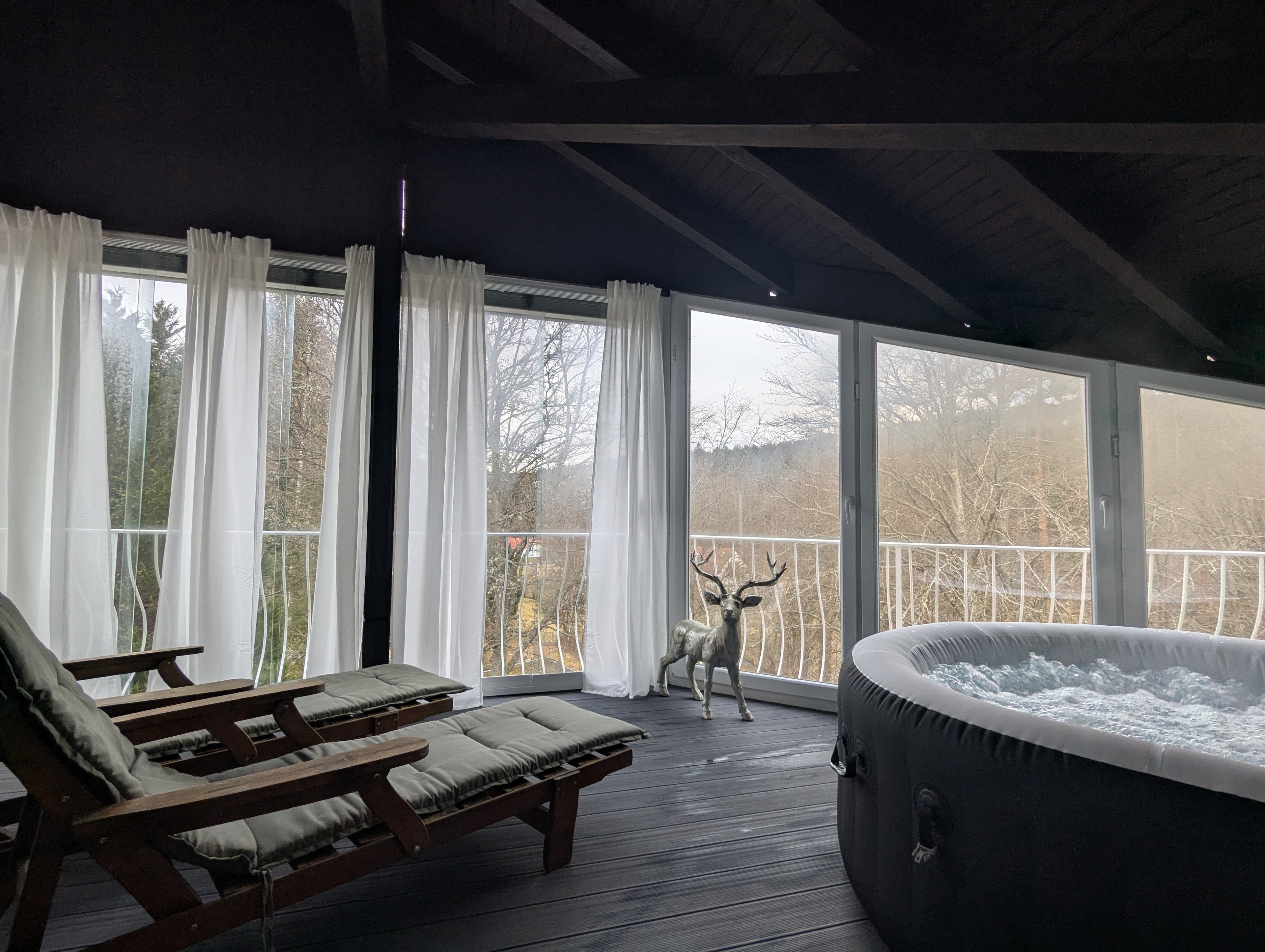 Willkommen in der Kamin Suite – dein Rückzugsort inmitten der Natur der Rhön. Die liebevoll renovierte Wald Villa von 1982 liegt auf einem 6500 m² großen Grundstück am Waldrand, umgeben von großen Bäumen und gemütlichen Plätzen zum Verweilen. Ein privater Balkon mit einem Whirlpool bietet dir einen herrlichen Blick. Für kleine Einkäufe gibt es einen charmanten Selbstbedienungsladen direkt im Haus. Hier genießt du deine Auszeit und findest zahlreiche Orte, um neue Energie zu tanken.