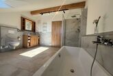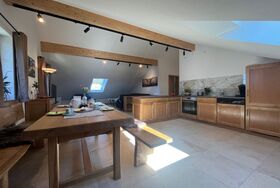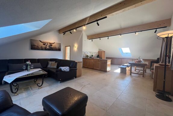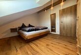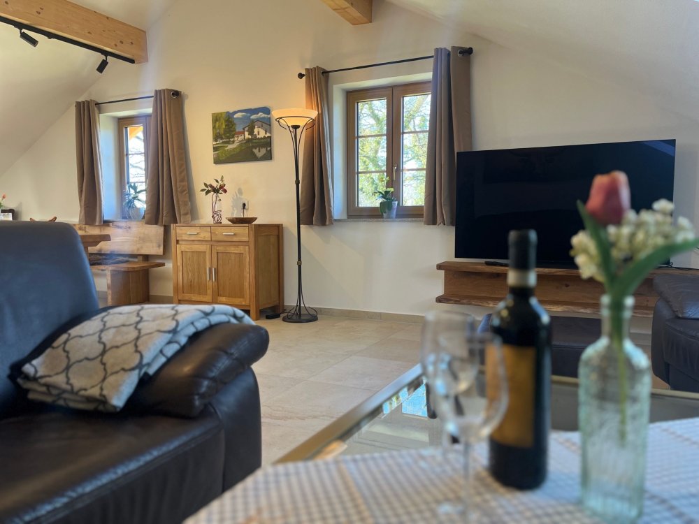 Die Eicherhof Suite ist eine großzügige, helle Ferienwohnung, die höchsten Komfort mit natürlicher Eleganz verbindet. Alle Möbel wurden aus Eichenholz aus dem eigenen Wald gefertigt, was eine warme und exklusive Atmosphäre schafft.