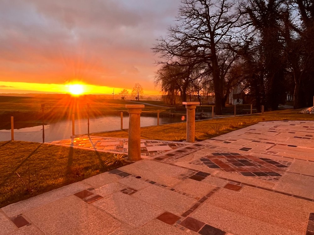 Der gesamte Hof wurde mit einer selbst entworfenen Fassade gestaltet, die dem Gästehaus eine beeindruckende Schloss-Ästhetik verleiht. Der gepflegte Garten, ein Weiher mit Springbrunnen und die großzügige Architektur machen den Eicherhof zu einem einzigartigen Ort. Auf der riesigen Abendterrasse können Sie die wohl schönsten Sonnenuntergänge erleben und den Tag in einer unvergleichlichen Kulisse ausklingen lassen.