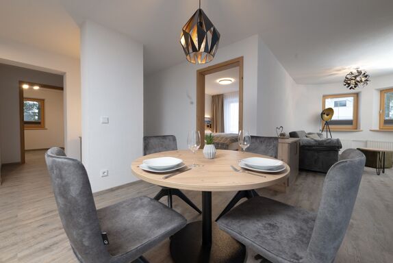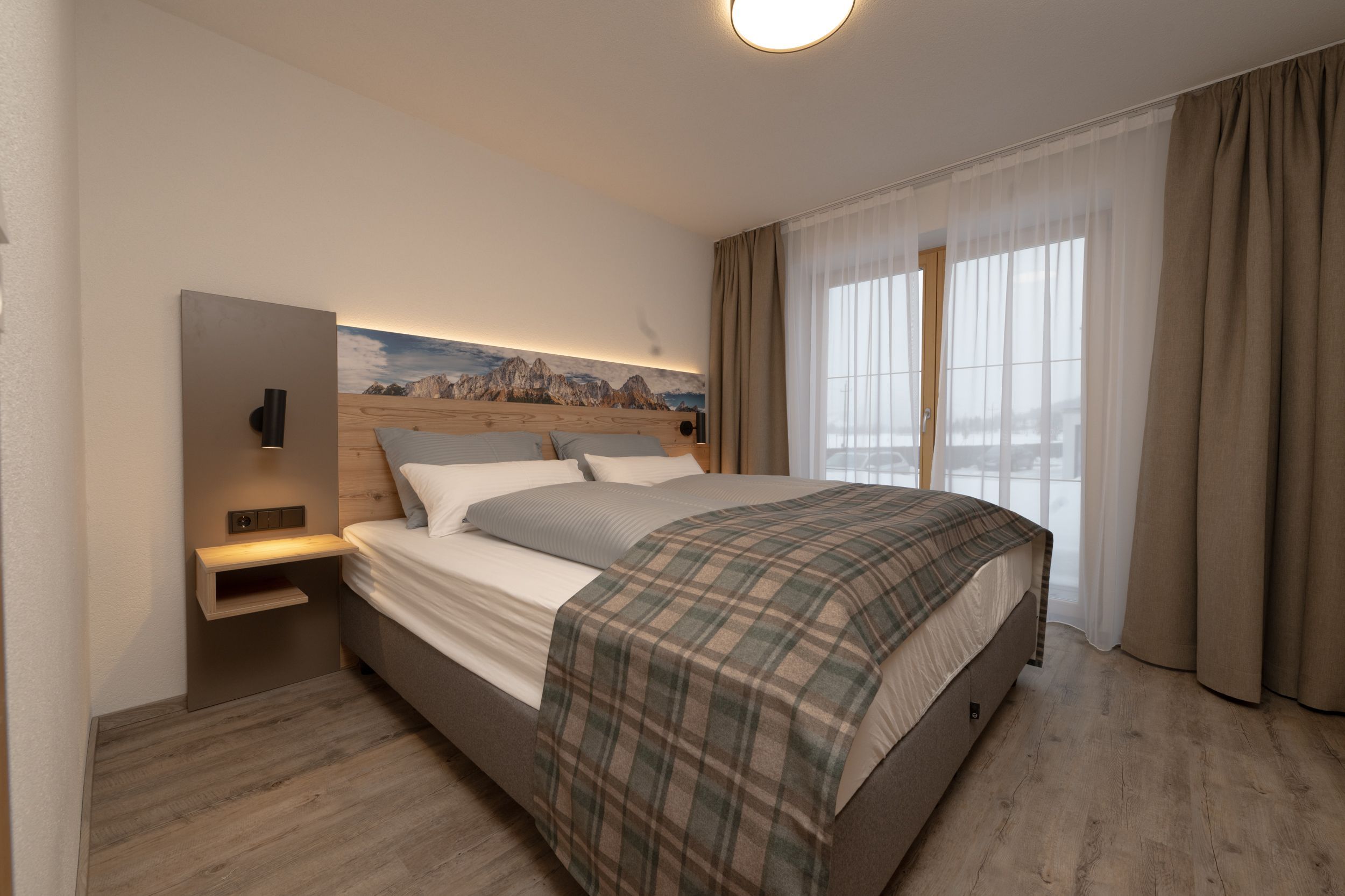 Sie blicken direkt in die umliegende Bergwelt und genießen den Komfort unserer hochwertig ausgestatteten Ferienwohnungen im rustikal-modernen Alpin-Style.