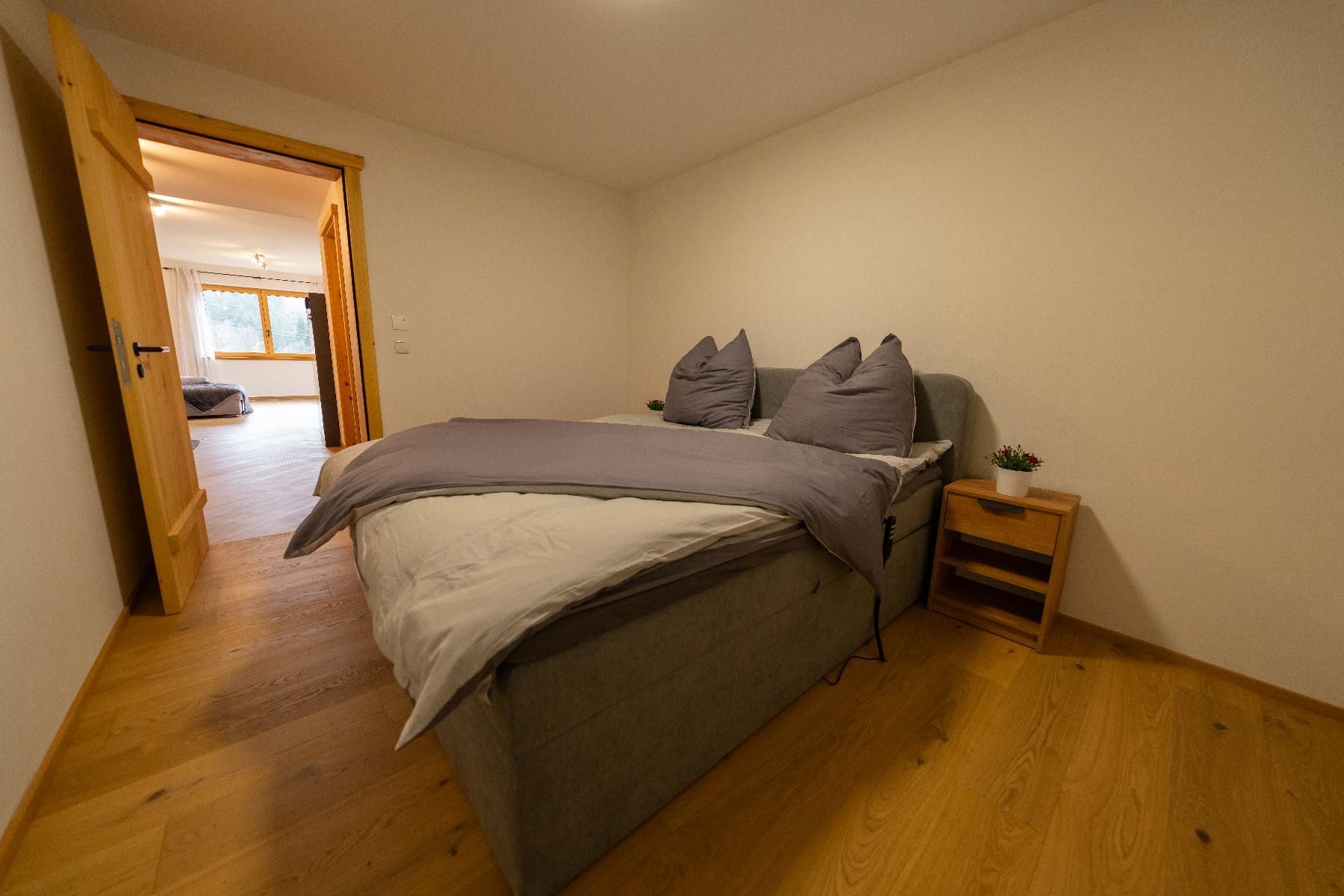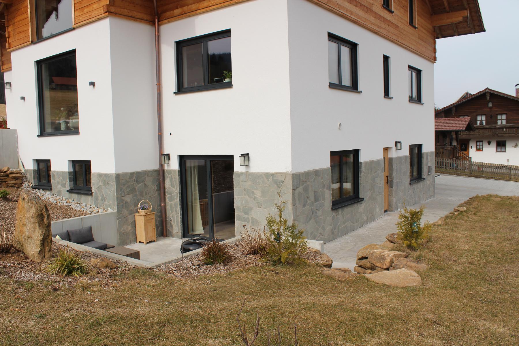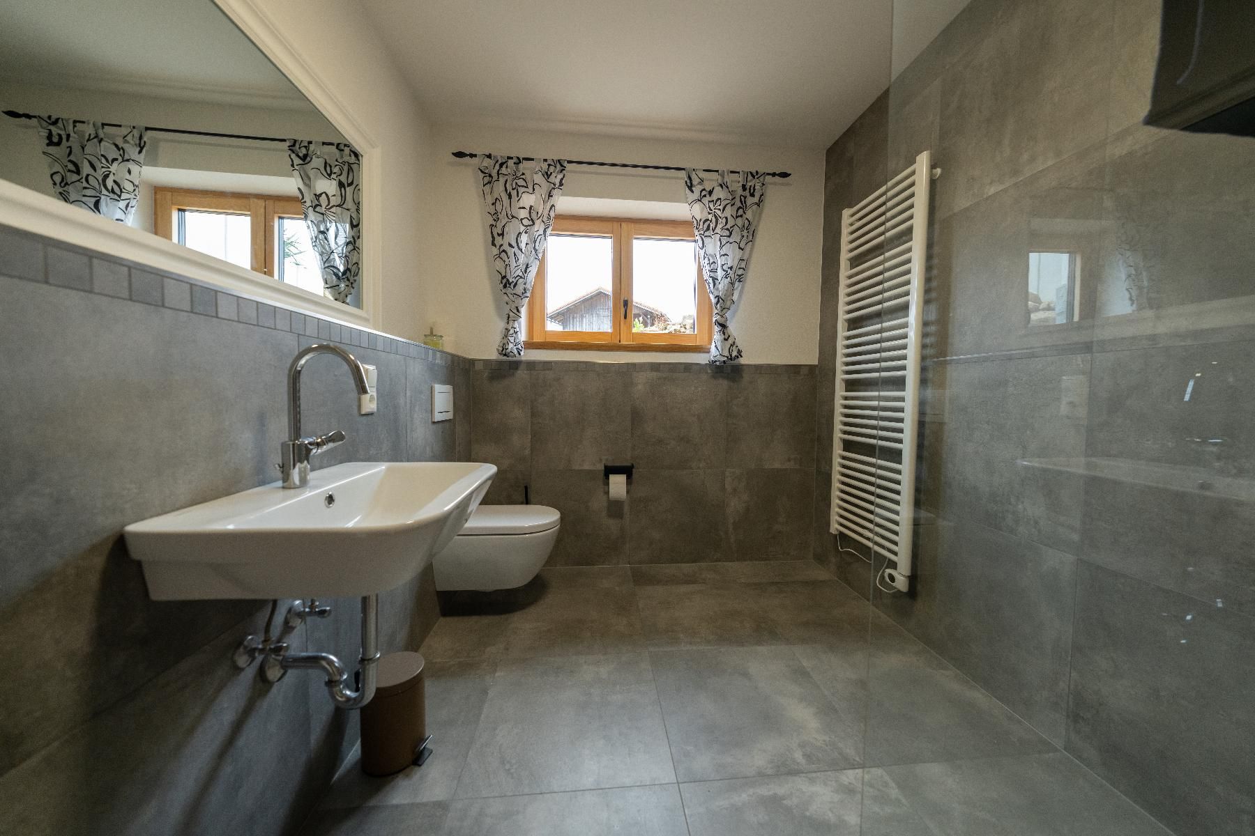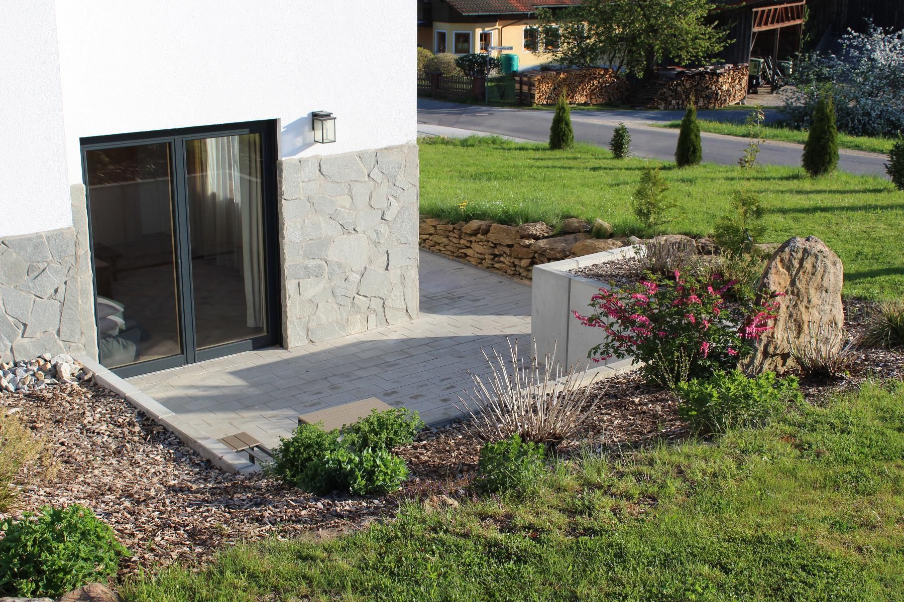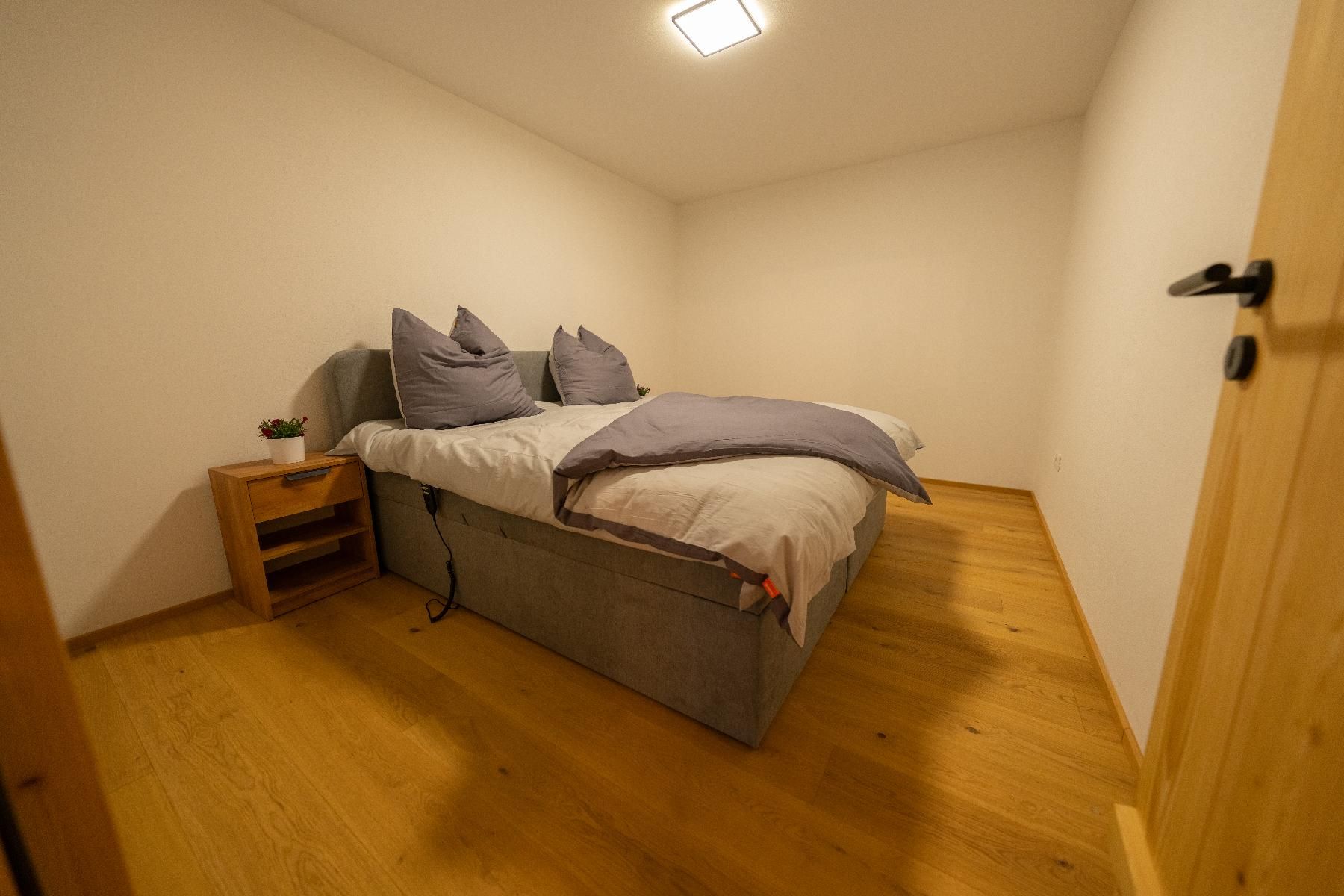 Die Ferienwohnung liegt im Erdgeschoss und bietet auf 65 Quadratmetern Platz für bis zu 3 Personen. Sie verfügt über einen offenen Wohn- und Essbereich, ein Badezimmer sowie ein separates Schlafzimmer. Im großzügigen Wohnraum befindet sich ein Kaminofen und eine Couch, die als Schlafcouch genutzt werden kann, ein Sat-TV sowie ein Essbereich. Die anschließende, offene Küche ist mit Spülmaschine, Kühl- und Gefrierschrank, Backofen, Herd, Toaster, Kaffeemaschine und Wasserkocher voll ausgestattet. Das Tageslichtbad verfügt über eine ebenerdige Regendusche, Waschbecken, WC und Handtuchtrockner. Das separate Schlafzimmer umfasst ein gemütliches Bockspringbett. Zur Ferienwohnung gehört eine eigene Terrasse, auf der Sie entspannen und den Ausblick genießen können, sowie ein PKW-Stellplatz. Außerdem kann ein Fitnessraum mit separater Dusche genutzt werden. Bettwäsche und Handtücher sowie WLAN stehen kostenfrei zur Verfügung.