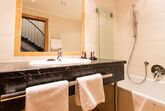 Ausstattung: 2-stöckige Suite mit separatem Schlafraum, Wohnraum mit 2 getrennten Einzelbetten, Badewanne, separates WC, Fön, Kosmetikspiegel, Telefon, Kabel-TV, Safe, Schreibtisch, Sitzcouch, Garderobe, kleine Terrasse nach Westen