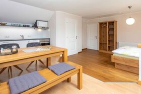 Die Ferienwohnung Drachenwand hat eine Größe von 33 m² und ist mit einem Schlafzimmer, Essbereich und Bad/WC ausgestattet. Im Essbereich ist ein TV vorhanden, die Wohnung ist für 2 Personen geeignet.