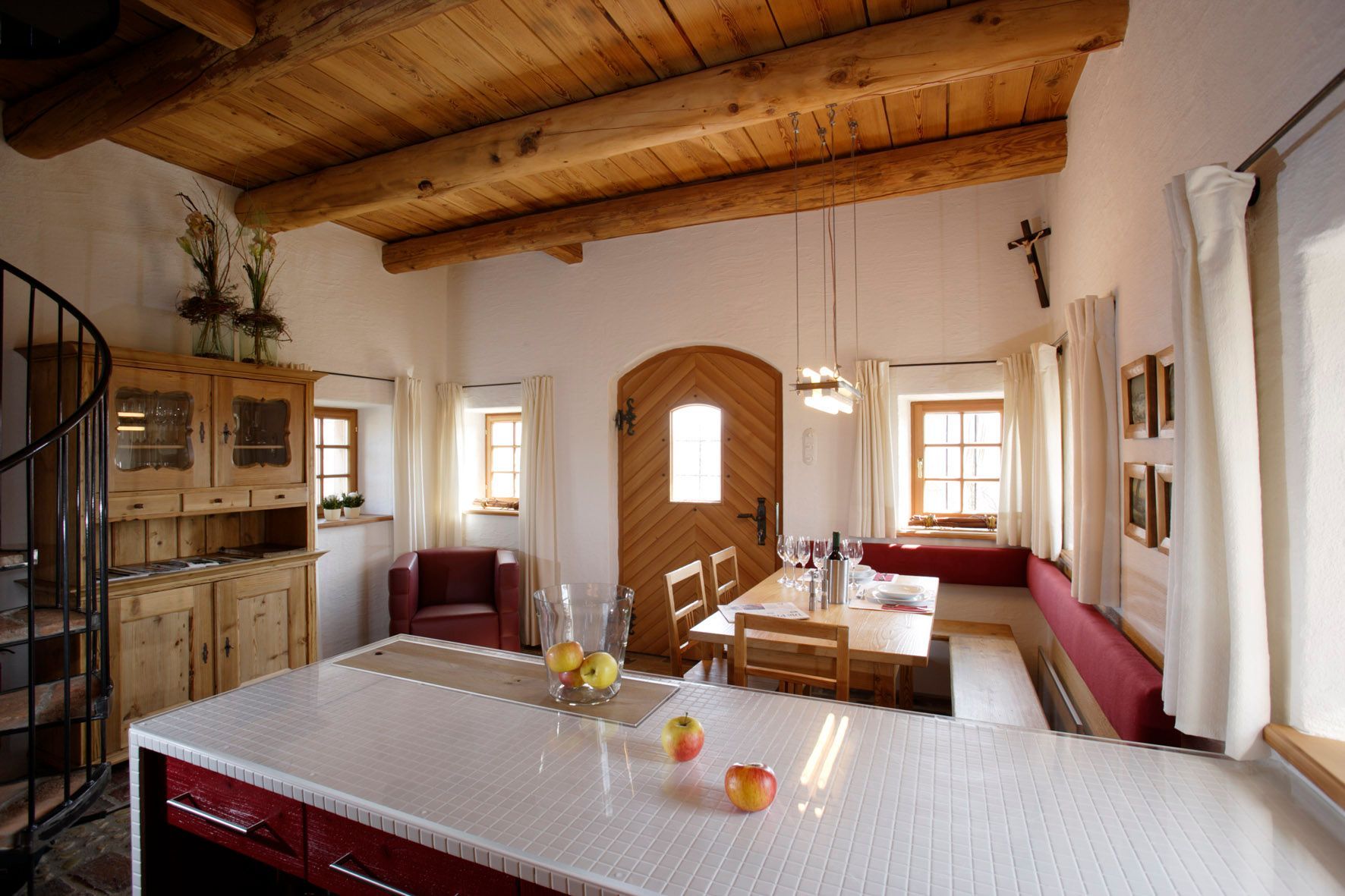 Nur wenige Schritte von unserem Wirtshaus entfernt, vereint unser Troadkastn moderne Innenarchitektur mit traditioneller Baukultur. Im Erdgeschoß befinden sich die Wohnküche mit Holzherd, voll ausgestatteter Küche und gemütlicher Essecke. Das modern eingerichtete Badezimmer verwöhnt mit einer angenehmen Fußmassage...