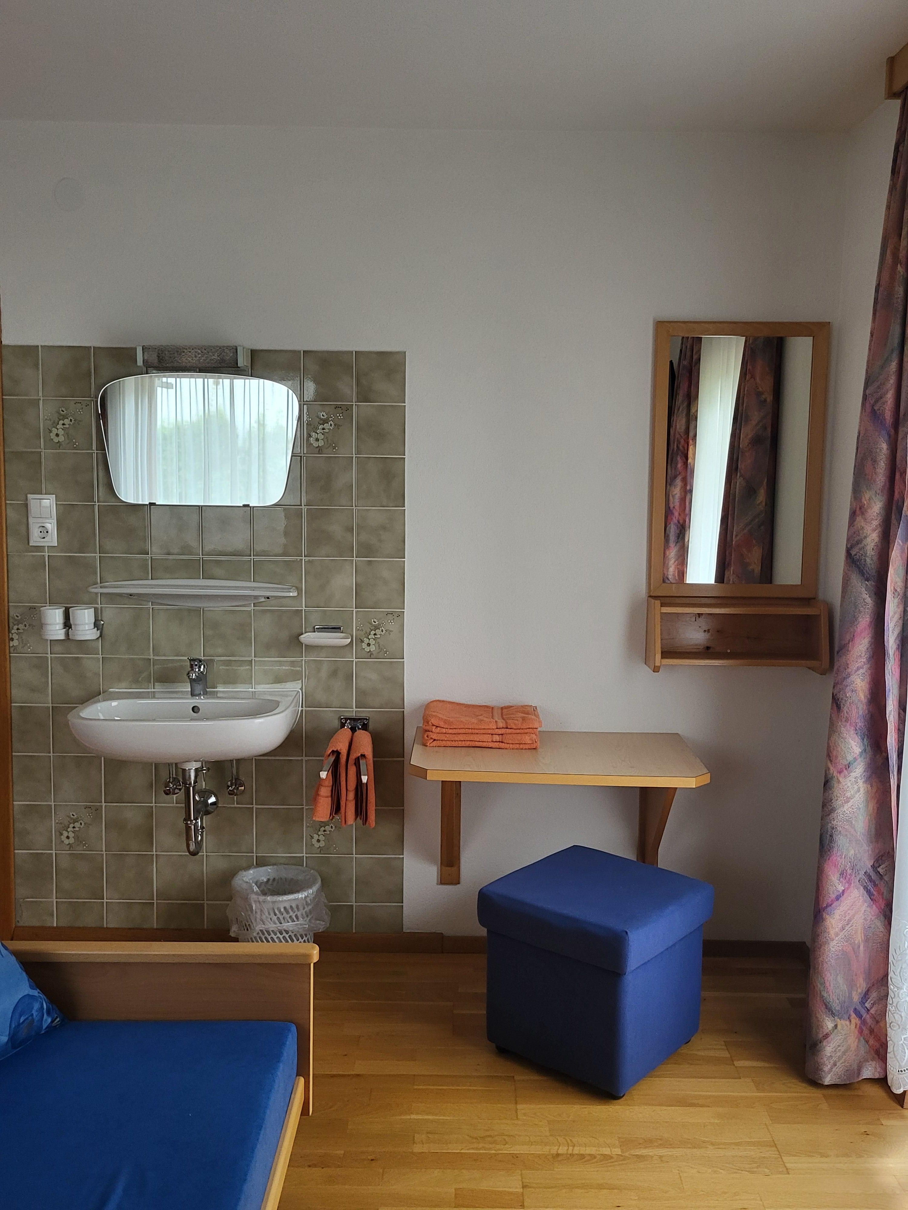 1 Etage : 1 Doppelzimmer mit Balkon und 1 Einzelzimmer, beide Zimmer mit Kalt - Warmwasser und eine Dusche /WC neben an.