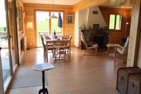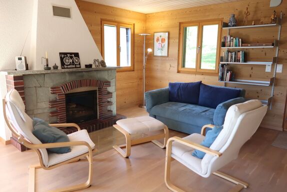 Saci, 3-Zimmer-Chalet 110 m2, Südostlage. Komfortabel und geschmackvoll eingerichtet: Wohn-/Esszimmer mit offenem Kamin (nur Deko). Ausgang zum Balkon, zur Terrasse, Richtung Südwesten und Richtung Südosten. Offene Küche (4 Kochplatten, Backofen, Geschirrspüler, Toaster, Wasserkocher, Tiefkühler, elektrische Kaffeemaschine, Kapseln für die Kaffeemaschine (Delizio) extra, Fondue Set (Käse)). Bad/WC. E-Heizung. Obergeschoss: 1 Zimmer mit 1 Doppelbett (2 x 90 cm, Länge 190 cm), Dusche/WC. Ausgang zum Balkon, Richtung Südosten. 1 Zimmer mit 2 Betten (90 cm, Länge 200 cm). Kleiner Balkon, grosse Terrasse. Terrassenmöbel. Herrliche Panoramasicht auf den See, die Berge, die Landschaft und die Ortschaft. Zur Verfügung: Kinderhochstuhl, Babybett, Haartrockner, Wickelkommode. Internet (WLAN). Parkplatz (2 Autos) beim Haus. Bitte beachten: Nichtraucher-Unterkunft. Montreux Riviera Card inklusive.