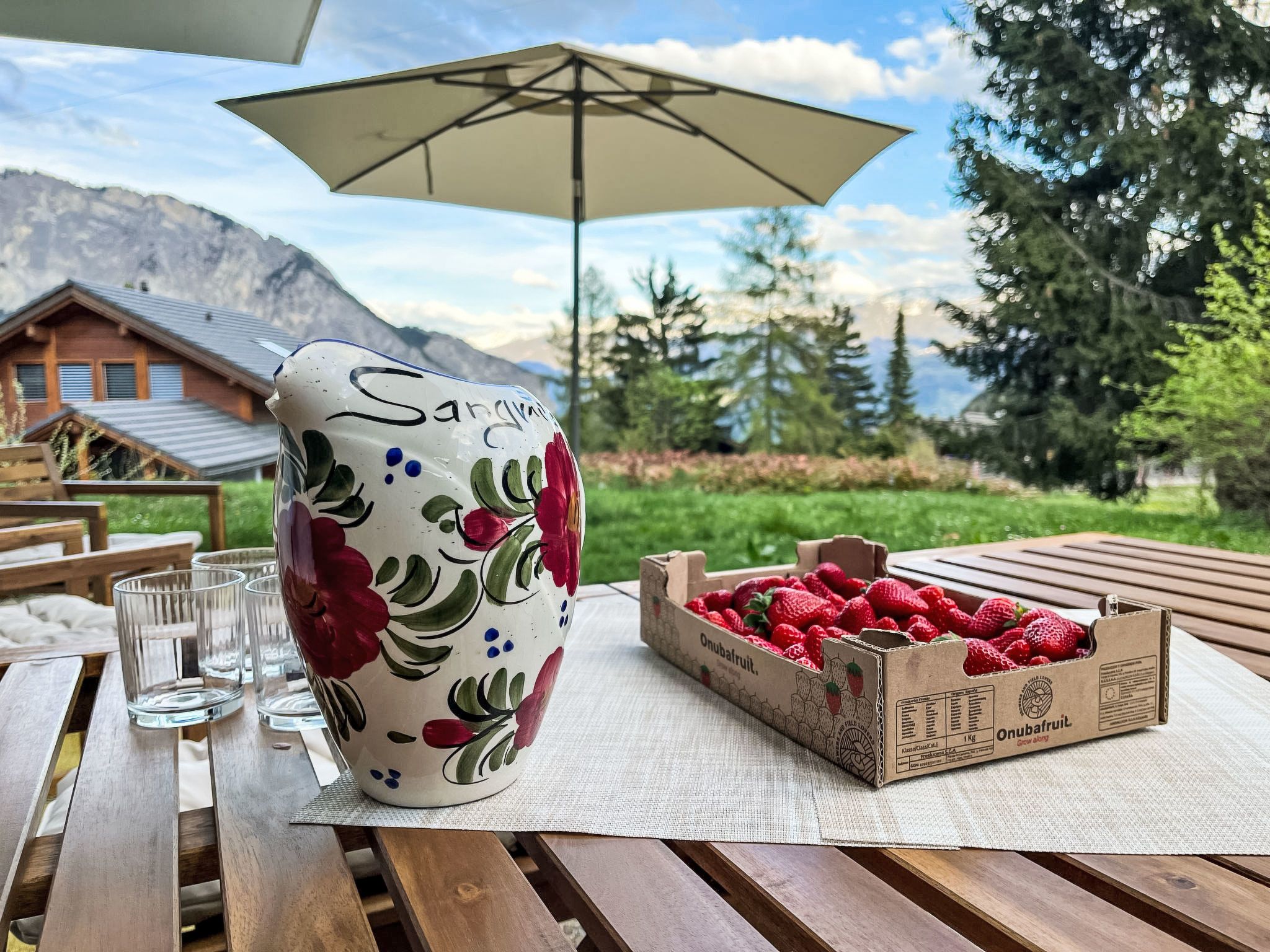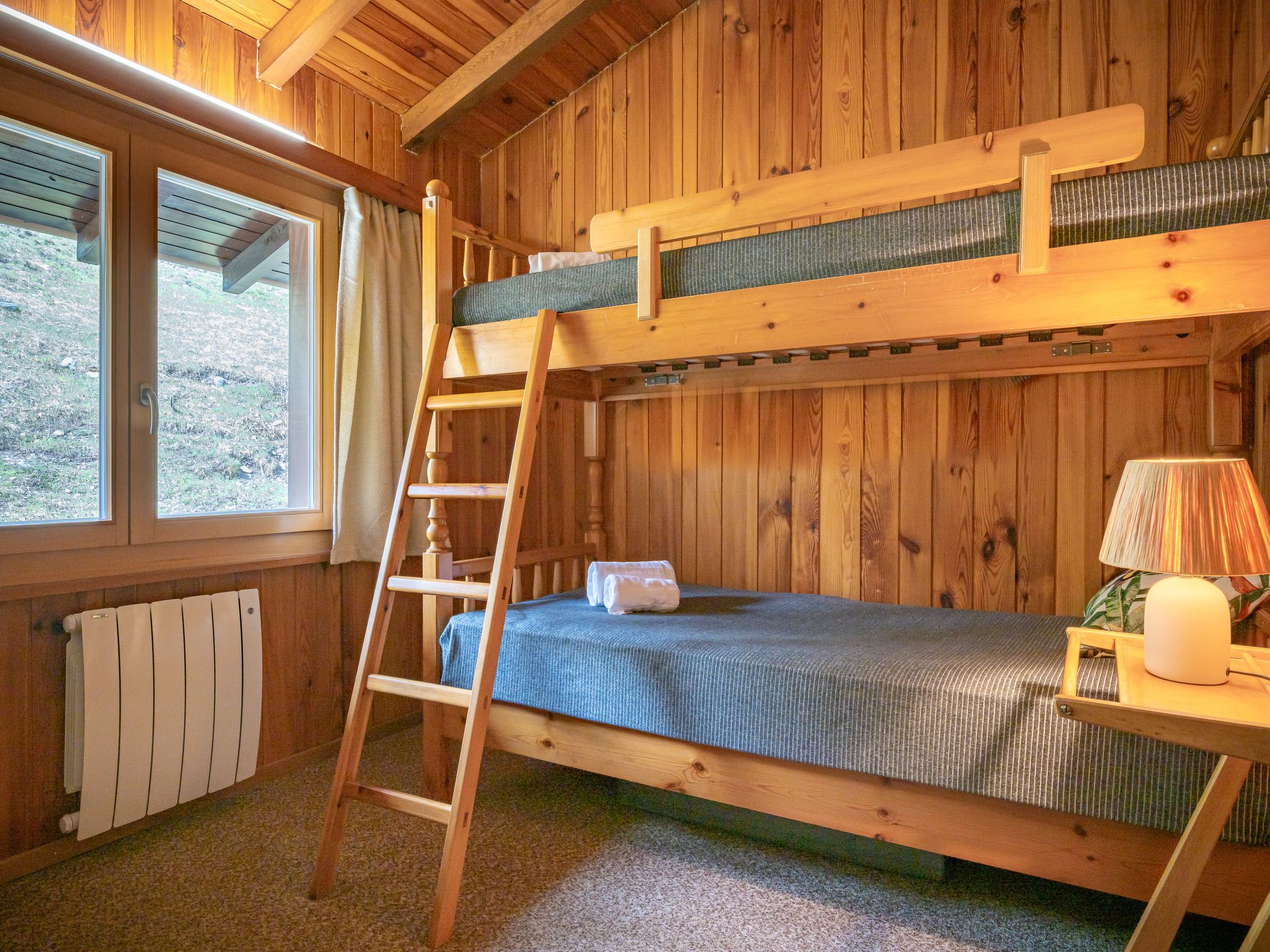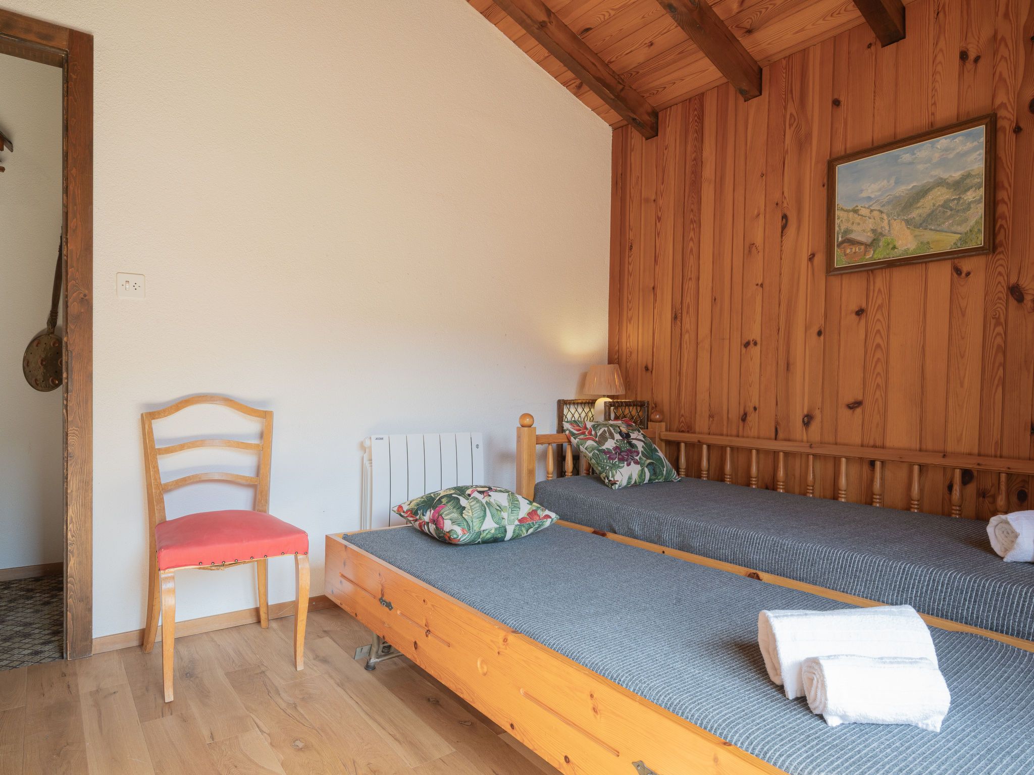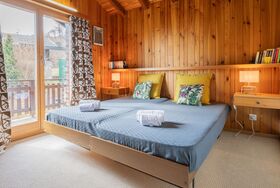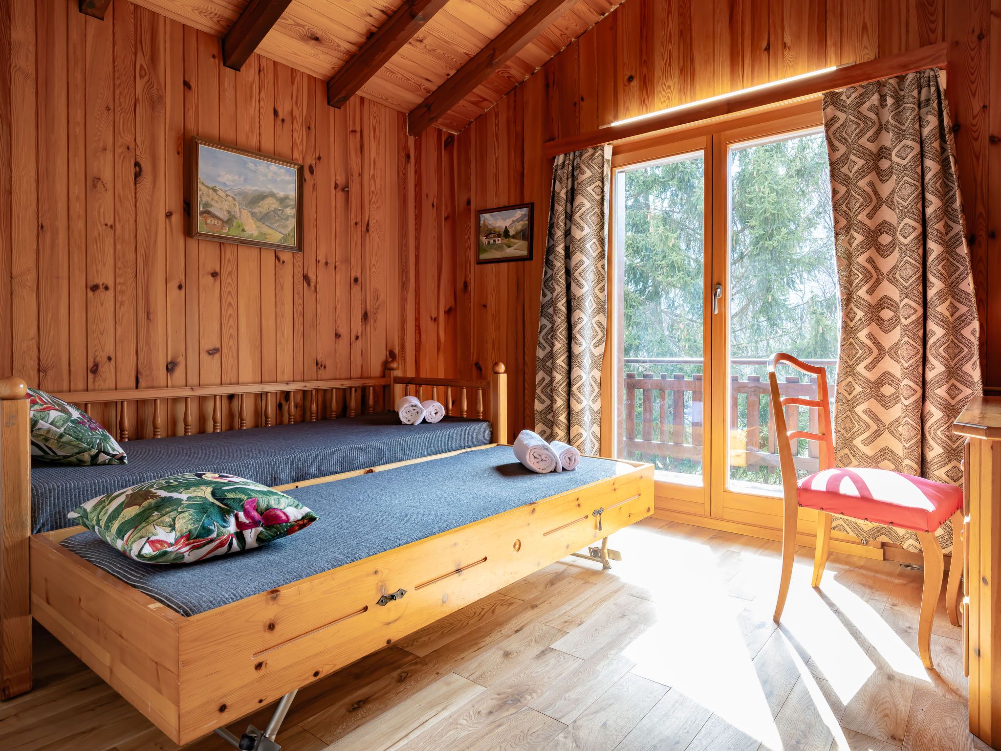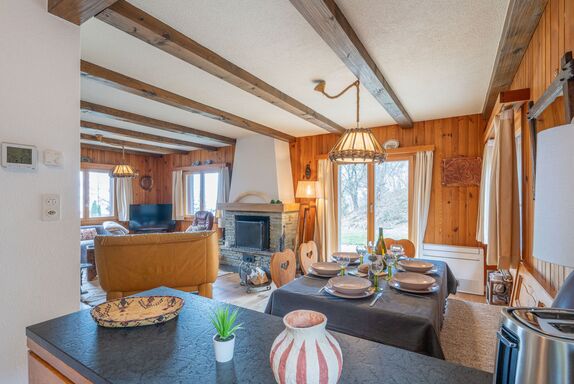 Chalet Le Katanga, 4-Zimmer-Chalet 102 m2 auf 2 Stockwerken. Teilweise renoviert im Jahre 2025, komfortabel und schön eingerichtet: Eingang mit sep. WC. Wohn-/Esszimmer mit offenem Kamin, Kabel-TV, Stereoanlage und Warmluftheizung. Ausgang zur Terrasse, Richtung Süden. Offene Küche (Backofen, Geschirrspüler, 4 Glaskeramikplatten, Toaster, Wasserkocher, elektrische Kaffeemaschine, Kapseln für die Kaffeemaschine (Nespresso) extra, Racletteofen, Fondue Set (Käse)). Ausgang zur Terrasse, Richtung Südwesten. Obergeschoss: 1 Kinderzimmer mit 1 x 2 Etagenbetten (80 cm, Länge 190 cm), Heizofen. 1 Zimmer mit 2 Betten (90 cm, Länge 190 cm), Heizofen. Ausgang zum Balkon, Richtung Süden. 1 Zimmer mit 1 Ausziehbett (2 Pers. 2 x 80 cm, Länge 190 cm), Heizofen. Ausgang zum Balkon, Richtung Süden. Bad/WC. E-Heizung. Parkettboden, Teppichboden. Grosse Terrasse, Südlage, grosser, Rasen. Terrassenmöbel, Gartengrill, Liegestühle (2). Schöne Panoramasicht auf die Berge. Zur Verfügung: Kinderhochstuhl, Babybett bis 3 Jahre, Haartrockner. Internet (WLAN, gratis). Parkplatz (2 Autos) in 20 m. Bitte beachten: geeignet für Familien. Nichtraucher-Unterkunft.