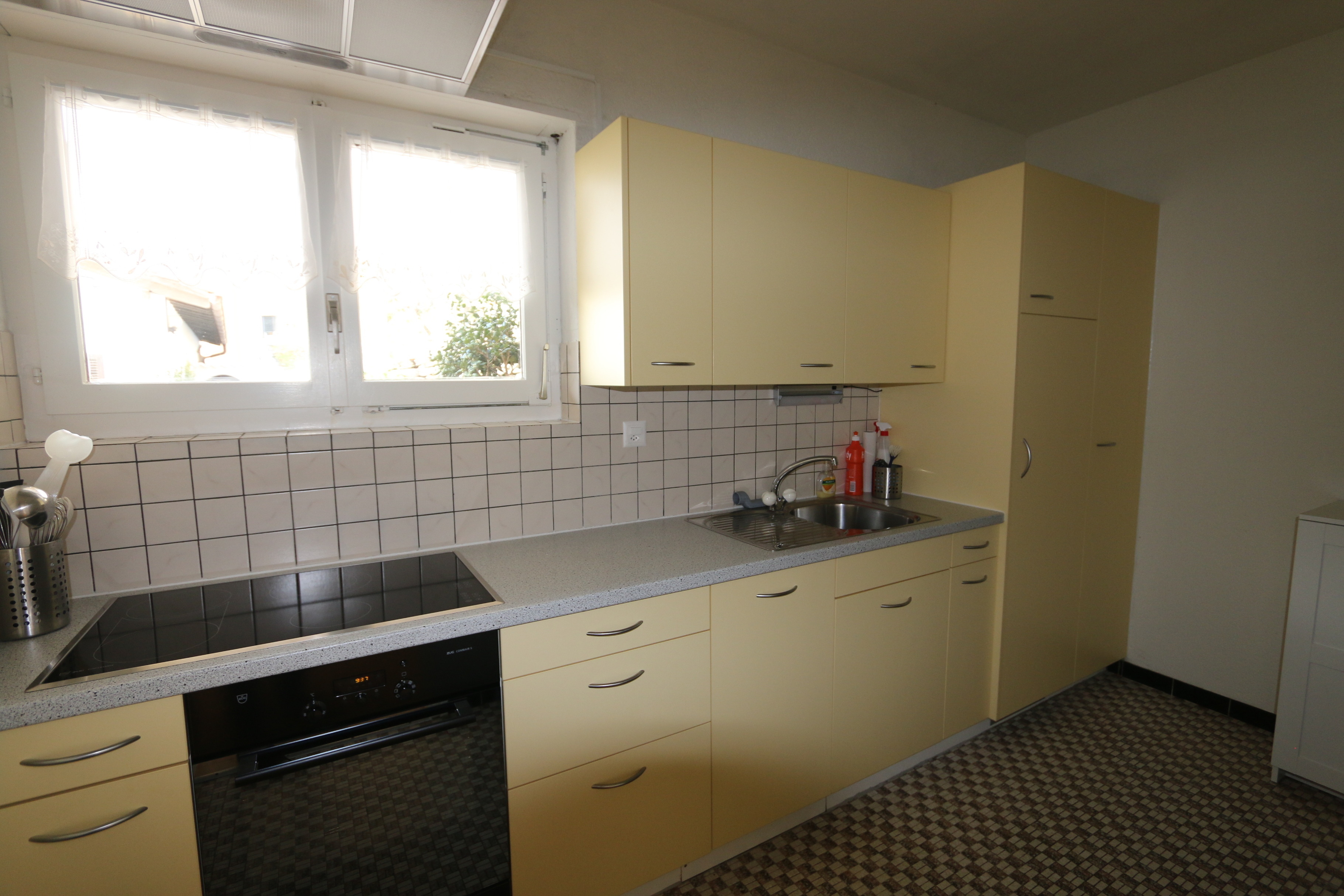 Die gut ausgestattete Küche besitzt unter anderem einen Kühlschrank, einen Herd zum Kochen und sogar eine Spülmaschine.
