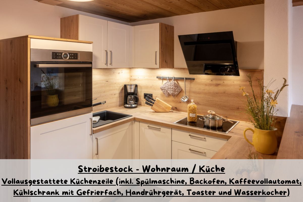 • Wohnküche mit vollausgestatteter Küchenzeile (inkl. Spülmaschine, Backofen, Kühlschrank mit Gefrierfach, …)