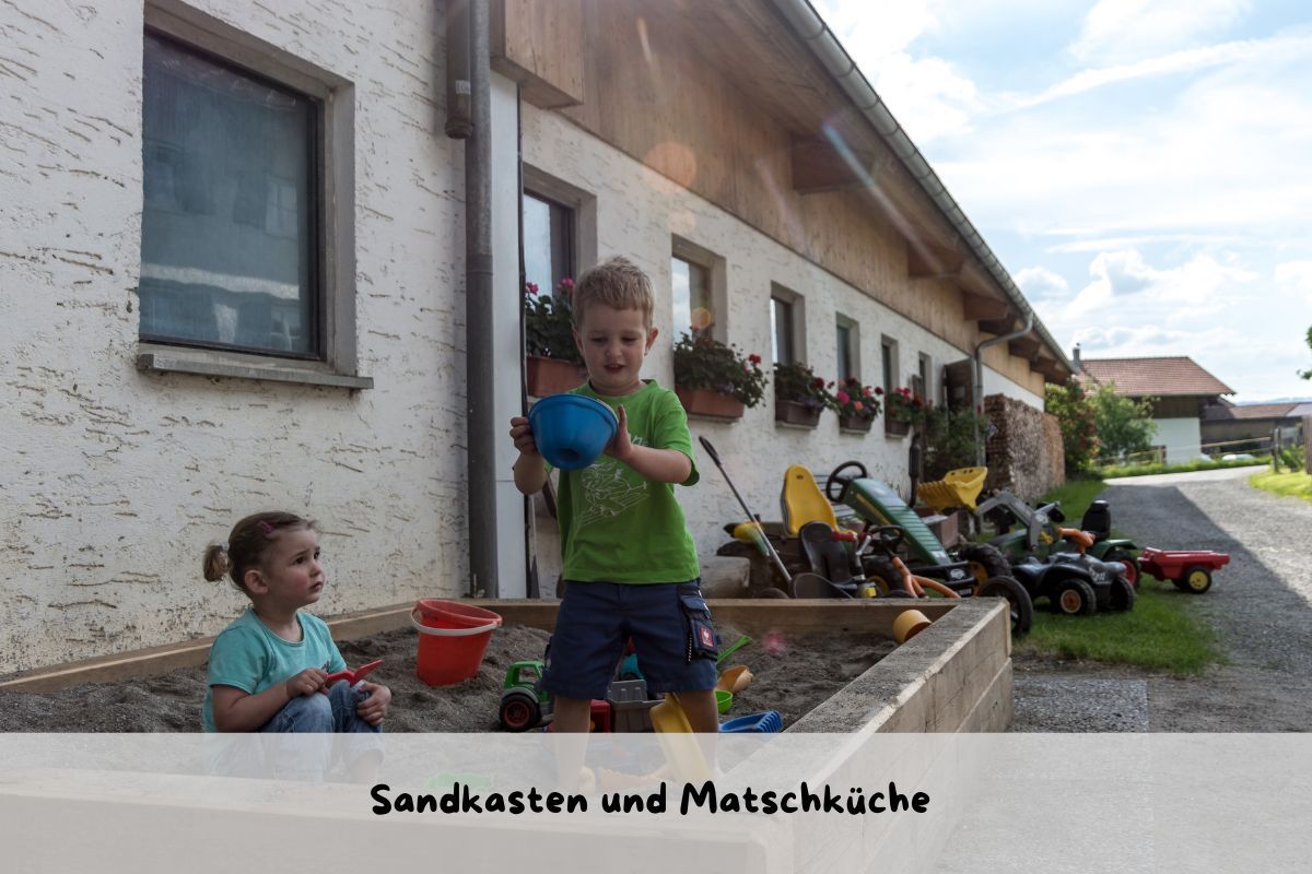 Unsere liebevoll eingerichteten Ferienwohnungen bieten höchsten Komfort, während draußen jede Menge Spaß wartet: Ein Spielplatz mit Kletterturm, Sandkasten, Trampolin und Kett-Cars lässt Kinderherzen höher schlagen. Im Winter geht’s direkt vom Hof zum Rodeln, Skifahren ist in den nahegelegenen Skigebieten möglich.