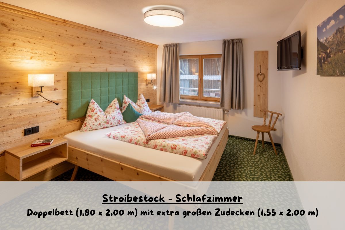 • Elternschlafzimmer mit Zirben-Doppelbett und TV
