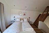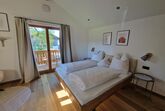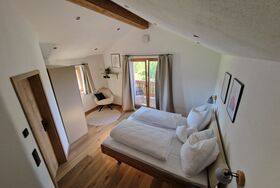 Im Obergeschoss finden Sie ein geräumiges Schlafzimmer mit einem komfortablen Doppelbett (180x200 cm) sowie eine praktische Schlafempore (160x200 cm) in der Dachschräge (niedrige Höhe), die sowohl für Kinder als auch für Erwachsene geeignet ist. Für die kleinsten Gäste stellen wir gerne ein Babybett bereit. Vom Schlafzimmer aus haben Sie Zugang zu einem kleinen Balkon, der ebenfalls mit einem herrlichen Ausblick auf die Berge und Wiesen punktet. Ein modernes Badezimmer mit ebenerdiger Dusche, WC, Waschbecken und Waschmaschine rundet das Obergeschoss ab. Das charmante Ferienhaus lädt zum Wohlfühlen ein – als Nichtraucherhaus bietet es eine rauchfreie Atmosphäre, doch auf der einladenden Terrasse ist das Rauchen gestattet. Natürlich bieten wir Ihnen kostenfreies WLAN im gesamten Chalet und auch im Außenbereich. Ein Parkplatz steht Ihnen direkt vor dem Haus zur Verfügung. Bitte beachten Sie, dass Hunde und andere Haustiere leider nicht gestattet sind.