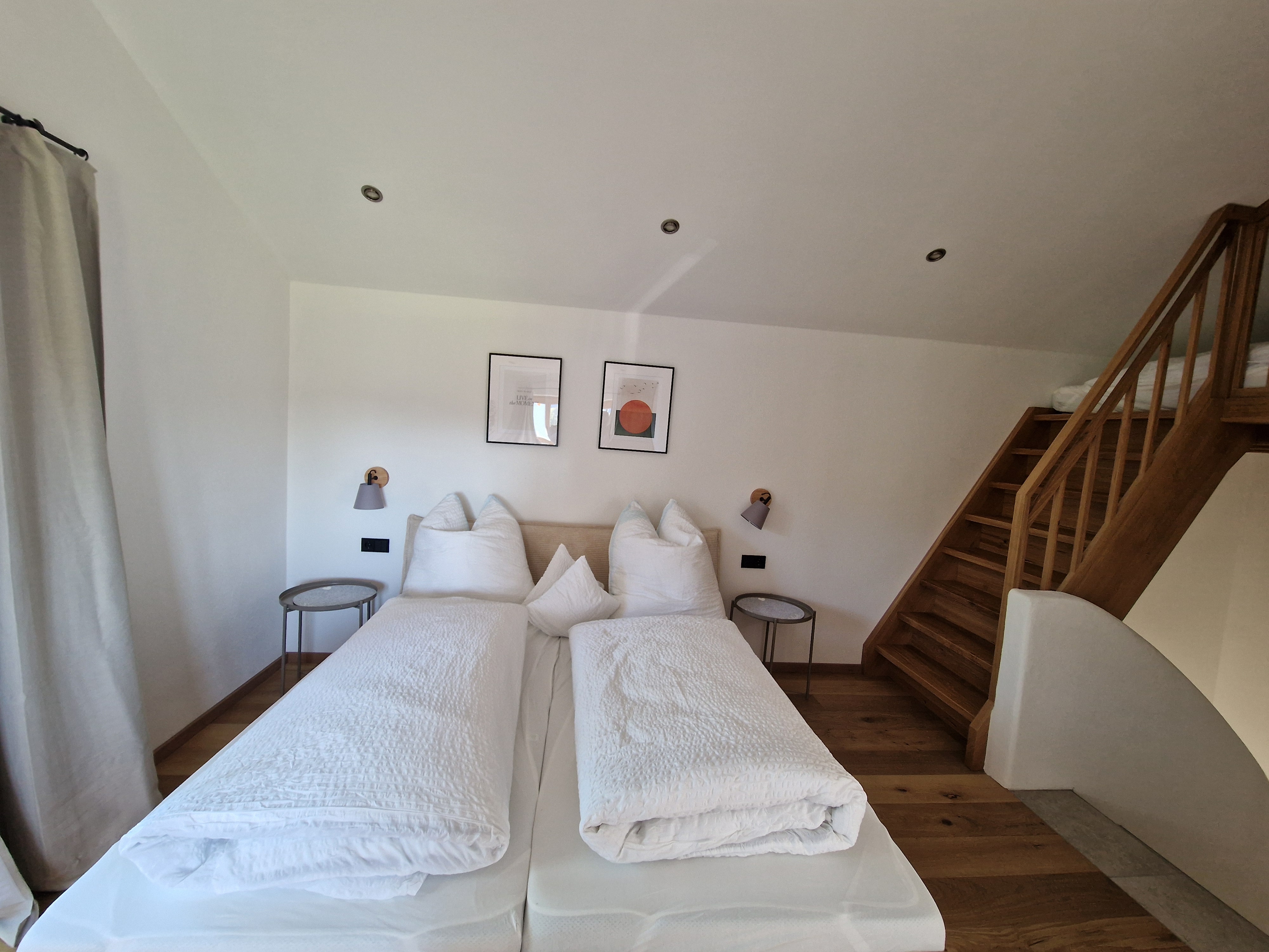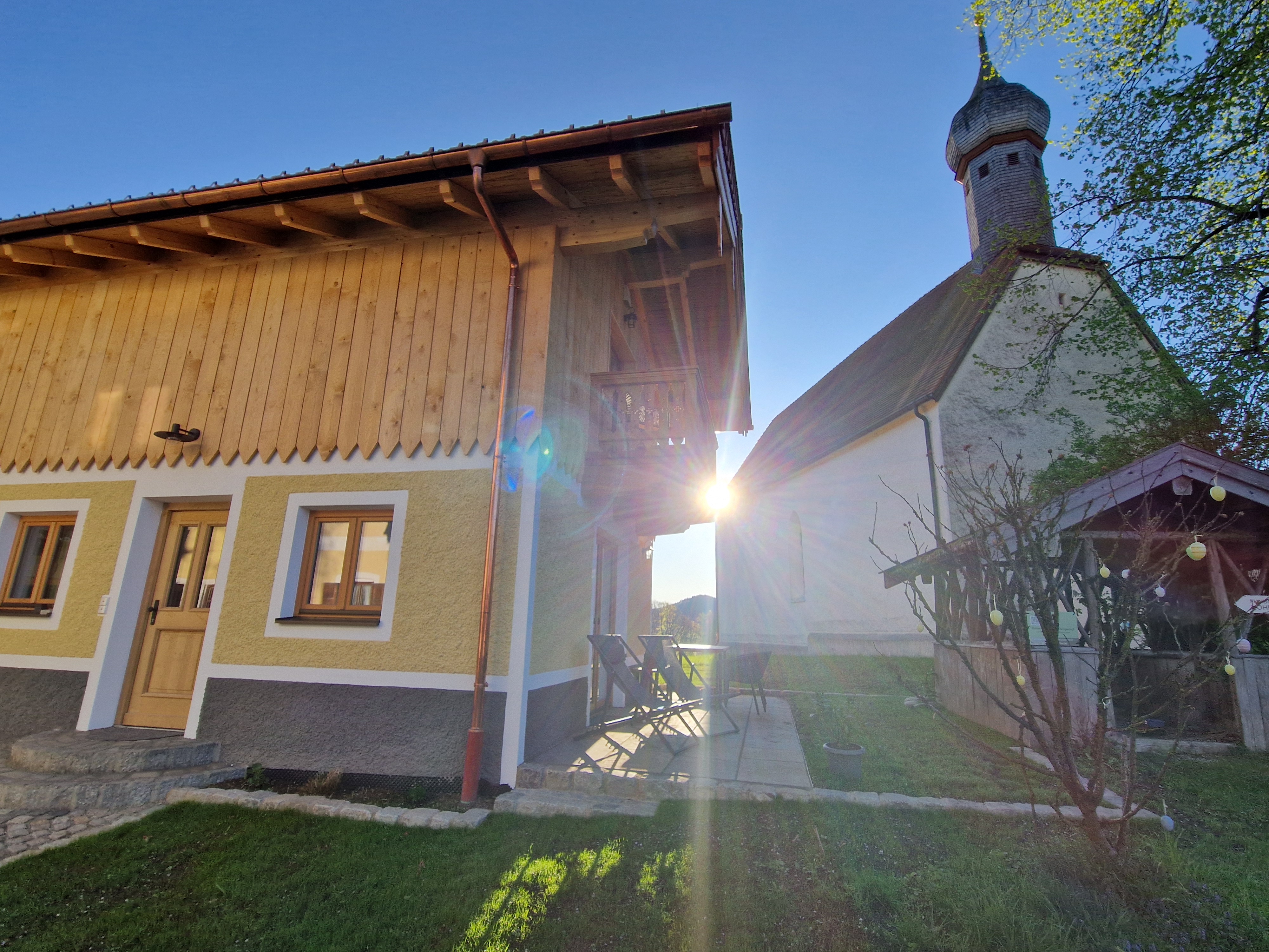 Herzlich willkommen auf dem idyllischen Geigerhof in Höhenberg, einem malerischen Ortsteil oberhalb von Aschau im Chiemgau! Lassen Sie sich von der Ruhe und Schönheit dieses kleinen Weilers verzaubern – hier gibt es keinen Durchgangsverkehr, sondern nur einen atemberaubenden Ausblick auf die umliegenden Berge, Wiesen und Bauernhöfe. Unser charmantes Bauernhofchalet, neben dem Bauernhof Geigerhof, bietet Ihnen alles für einen unvergesslichen Urlaub – ein Wohlfühlort für die gesamte Familie. Genießen Sie die besondere Atmosphäre des Chalets, das direkt an die kleine Filialkirche Hl. Kreuz grenzt – ein echtes Schmuckstück, das nur gelegentlich für Andachten genutzt wird und daher kein regelmäßiges Glockengeläut stört. Das Chalet erstreckt sich über zwei Etagen und ist perfekt für Familien oder Paare. Im Erdgeschoss erwartet Sie eine offene Küche mit gemütlicher Essecke, ein einladender Wohnbereich sowie eine Terrasse mit einem kleinen Garten – ideal für laue Sommerabende. Im Obergeschoss finden Sie ein großzügiges Schlafzimmer mit Doppelbett, eine einladende Schlafempore in der Dachschräge und ein modernes Badezimmer. Zu den weiteren Annehmlichkeiten gehören ein kostenloser Parkplatz direkt am Chalet sowie kostenloses WLAN. Bitte beachten Sie, dass Hunde und andere Haustiere leider nicht gestattet sind.