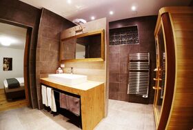 Im Erdgeschoss erwartet Sie eine großzügige, voll ausgestattete Wohnküche, die sich durch große Terrassentüren nahtlos zum idyllischen Garten hin öffnet. In der Küche befindet sich ein Weinkühlschrank mit unserem Weinsortiment zum verkosten. An kühleren Tagen sorgt der urige Kachelofen im Wohnbereich für gemütliche Stunden.