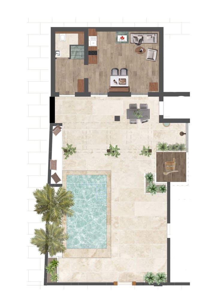 Das etwa 80 m² große Haus ist ideal für alle, die einen erholsamen Urlaub mit dem gewissen Etwas suchen. Der liebevoll gestaltete, private Garten ist ein kleines Paradies: Lassen Sie die Seele baumeln im Salzwasserpool, entspannen Sie in der Sauna und genießen Sie laue Abende unter der Weinpergola mit Blick ins Grüne. Für Genussmenschen gibt es ein eigenes Gemüsebeet mit frischen Kräutern, Salaten und Tomaten – natürlich zur freien Entnahme.