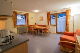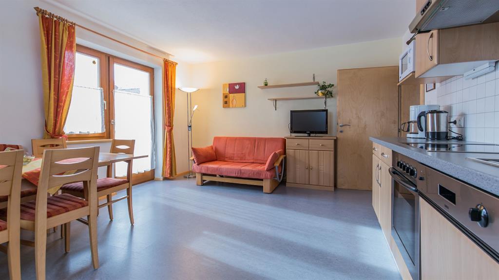 • Wohnküche: Voll ausgestattet mit Spülmaschine, Mikrowelle, Cerankochfeld, Backofen, Kaffeemaschine, Toaster, Wasserkocher und SAT-TV. Eine gemütliche Sitzcouch lädt zum Verweilen ein.