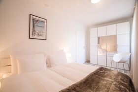 Die grosszügige 2. Zimmer Ferienwohnung bietet Platz für vier Personen. Schlafen ist in zwei separaten Zimmern möglich. Die Ferienwohnung hat einen bestuhlten Balkon mit Südlage und eine komplett ausgestattete Küche. Eine komfortable Sofagarnitur vervollständigt das Set-Up.