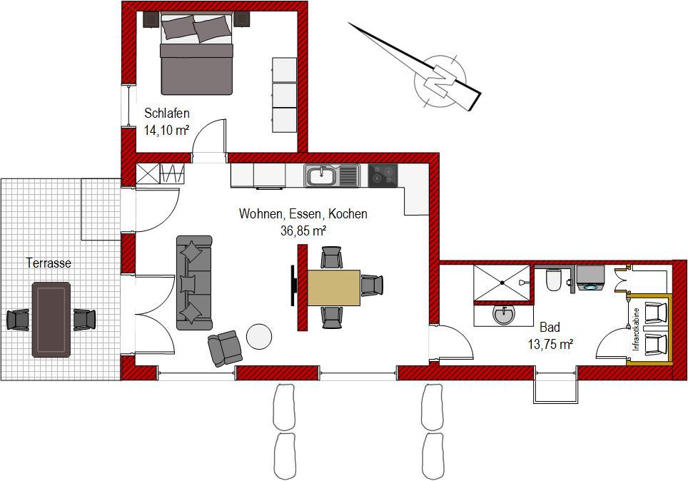 • moderne Ausstattung mit Infrarotkabine