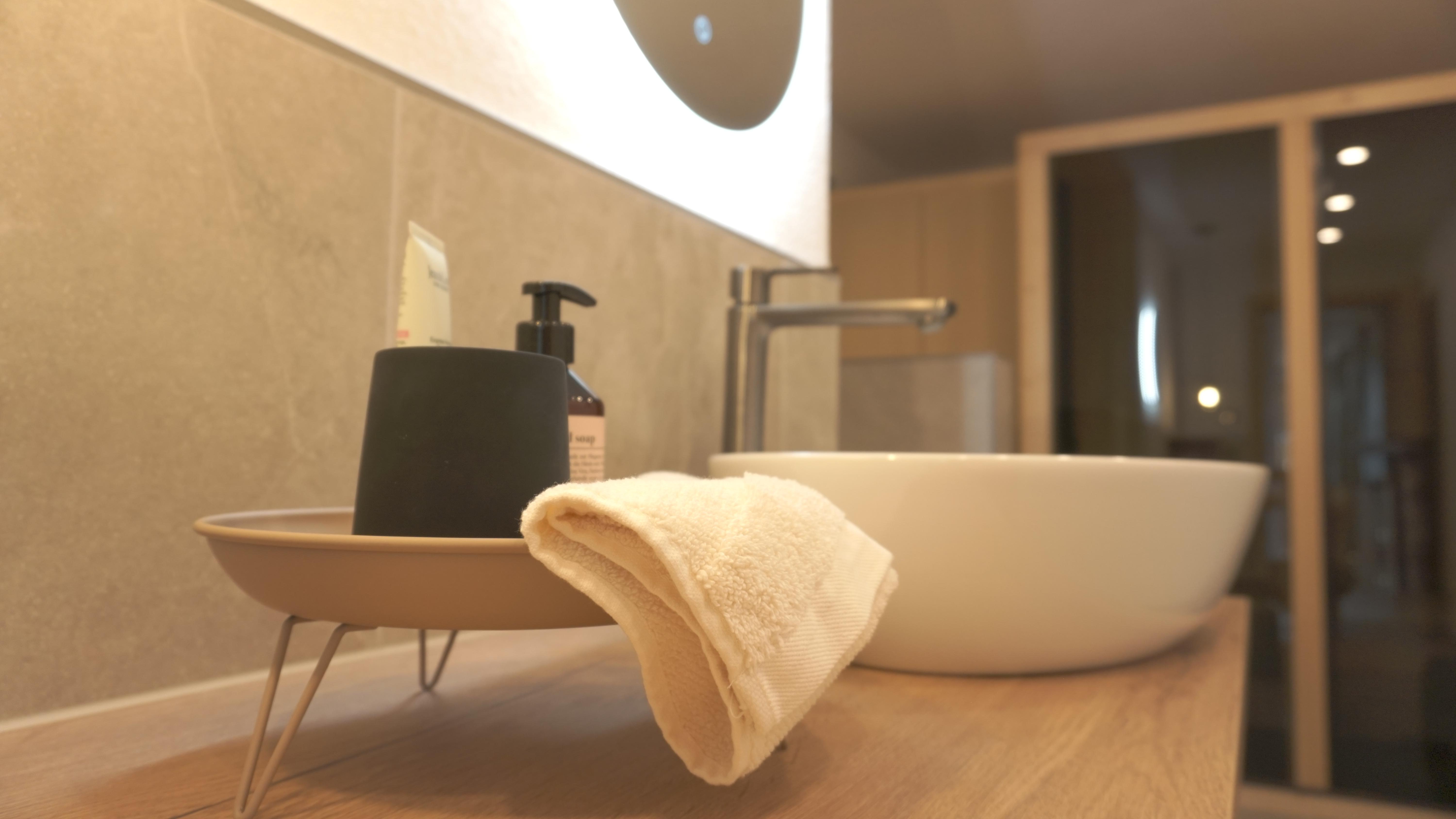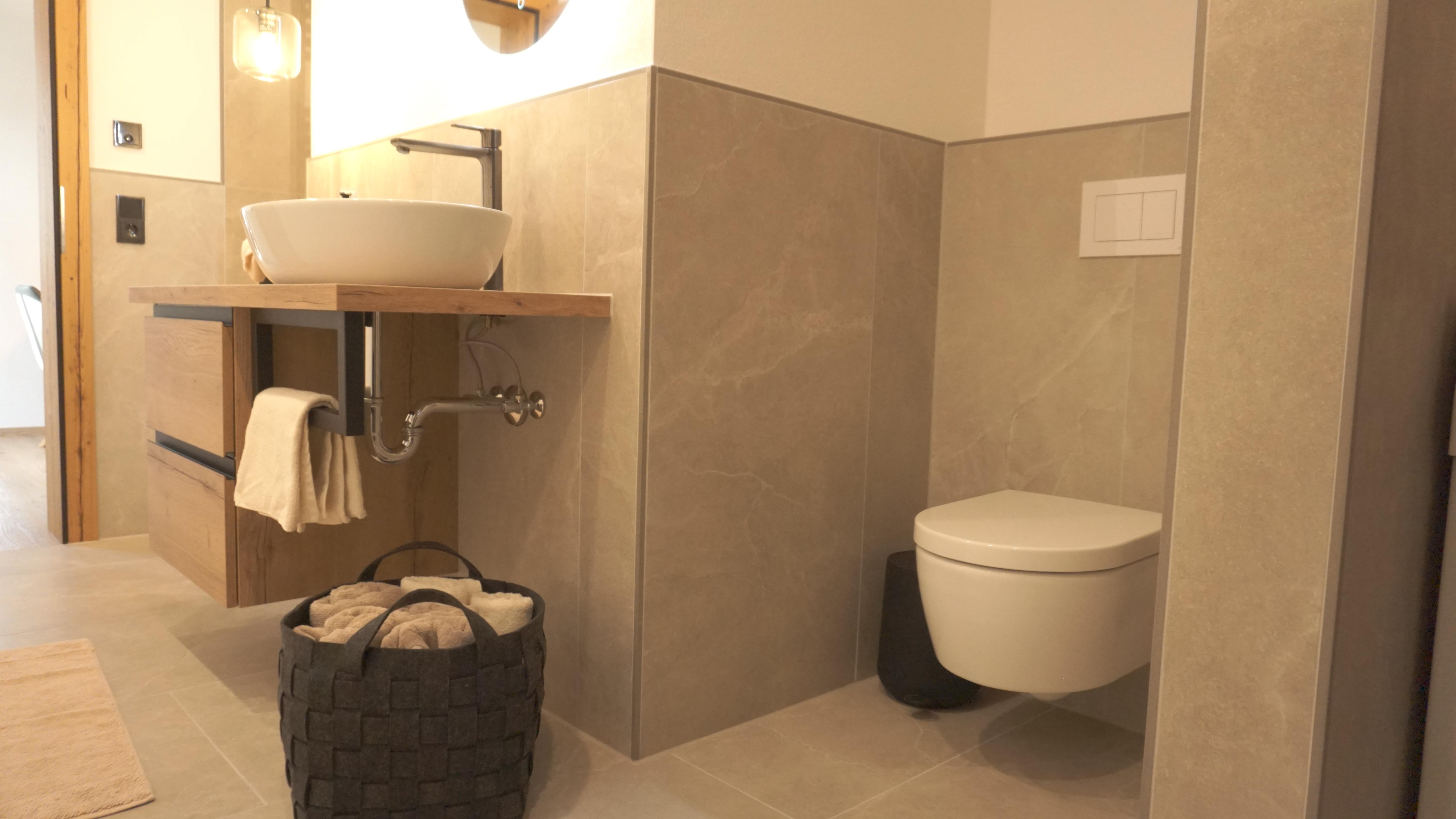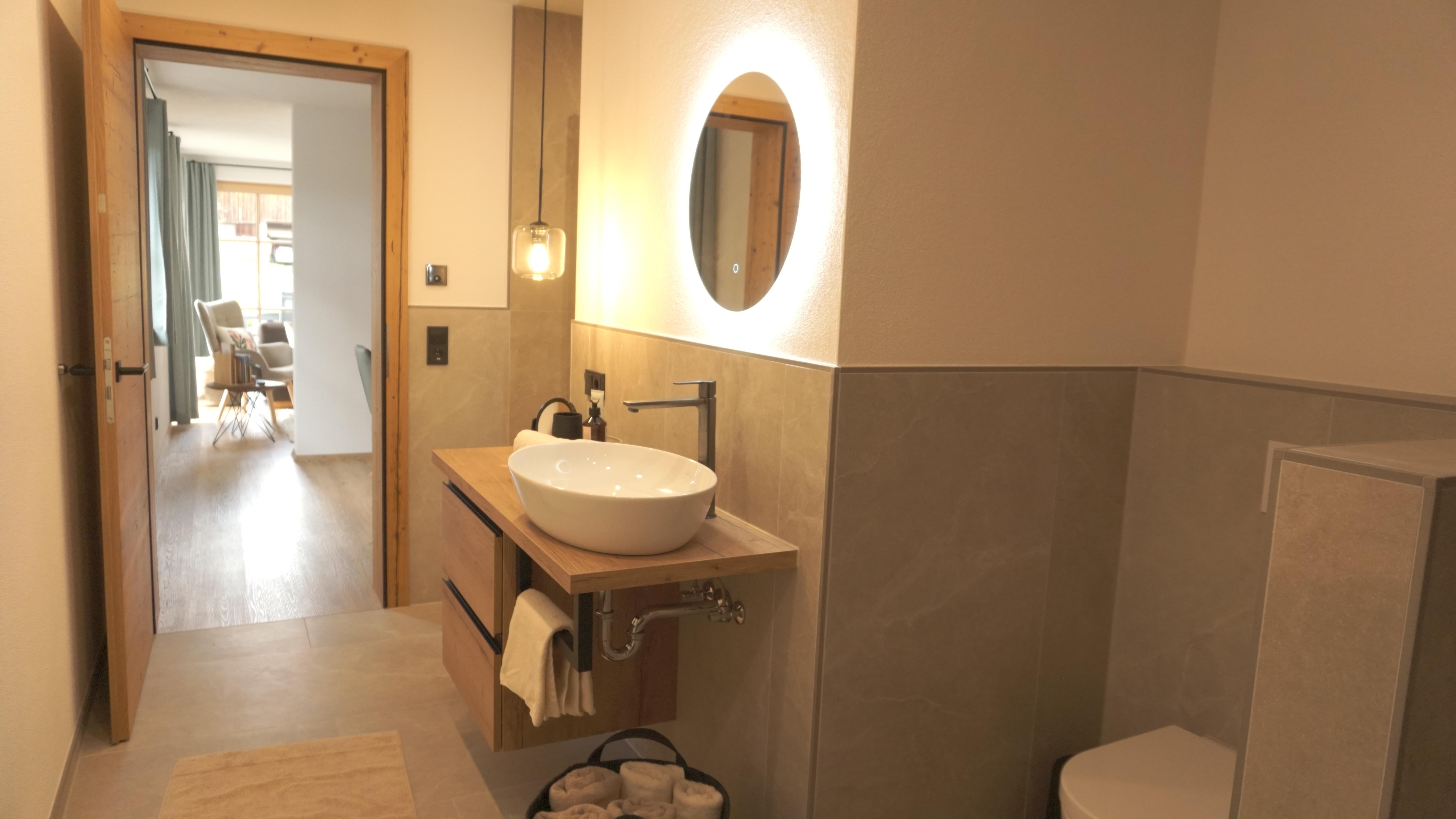 Ein großzügiges Bad mit Dusche, Waschmaschine und hochwertiger Infrarotkabine (Physiotherm), inclusive Shampoo, Duschgel und Conditioner lädt sie am Abend für entspannte Momente ein.