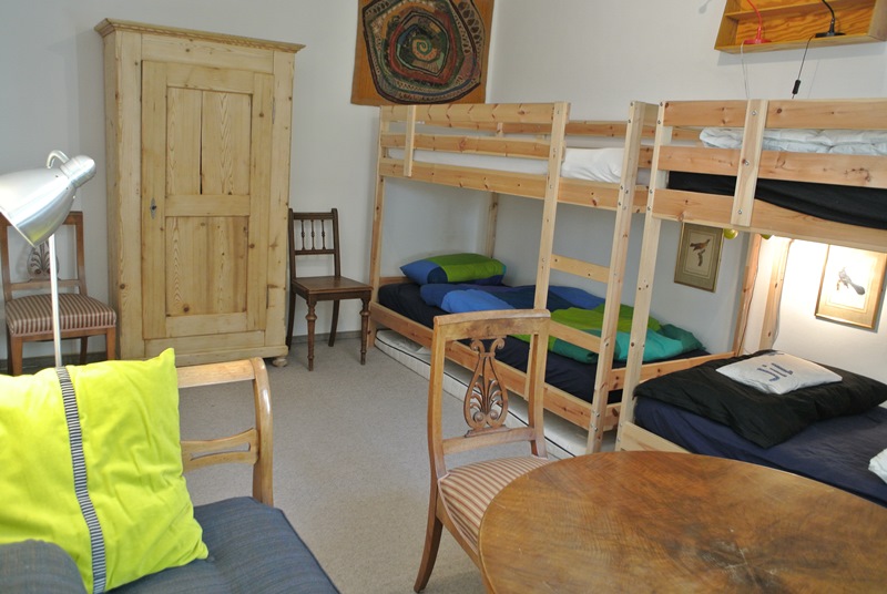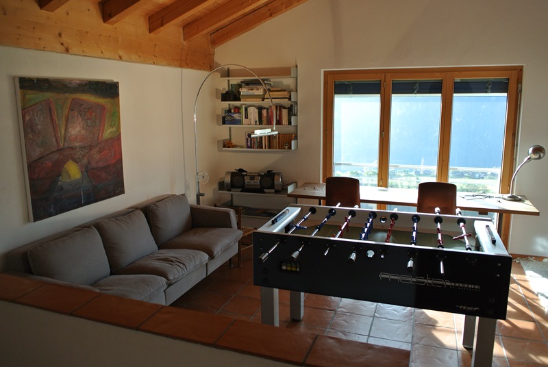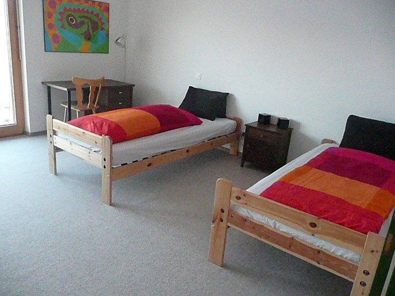 Im Erdgeschoss 1 Zimmer mit 2 Einzelbetten, 1 Zimmer mit einem Doppelbett 1.80m, 1 Zimmer mit 2 Kajüten betten (Doppelstockbetten). Im Obergeschoss hat es 1 Zimmer mit Doppelbett 1.40m.Wohnzimmer: