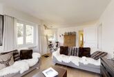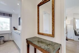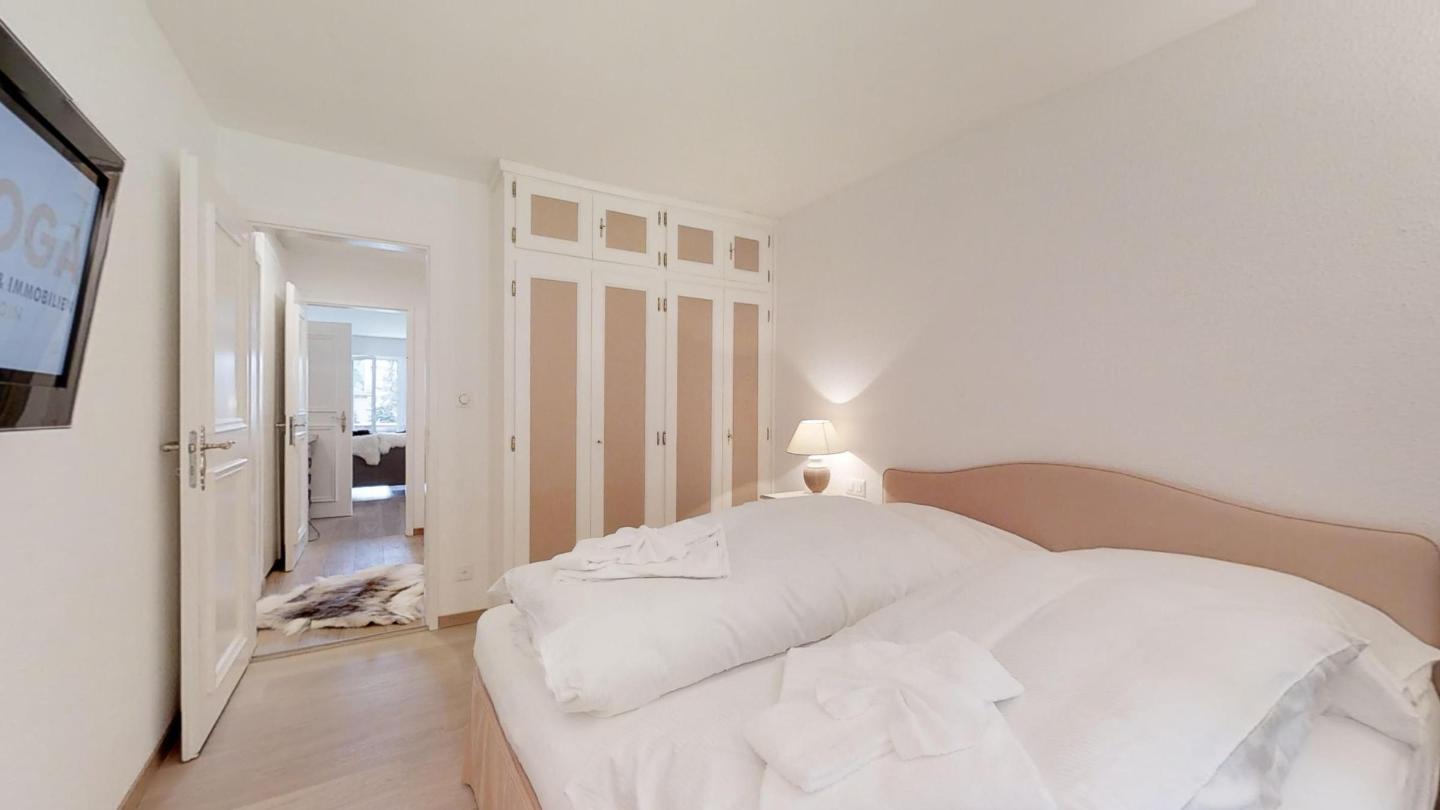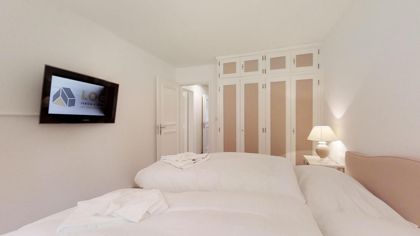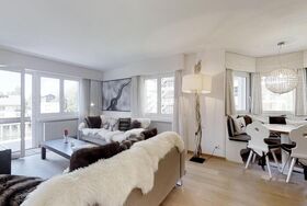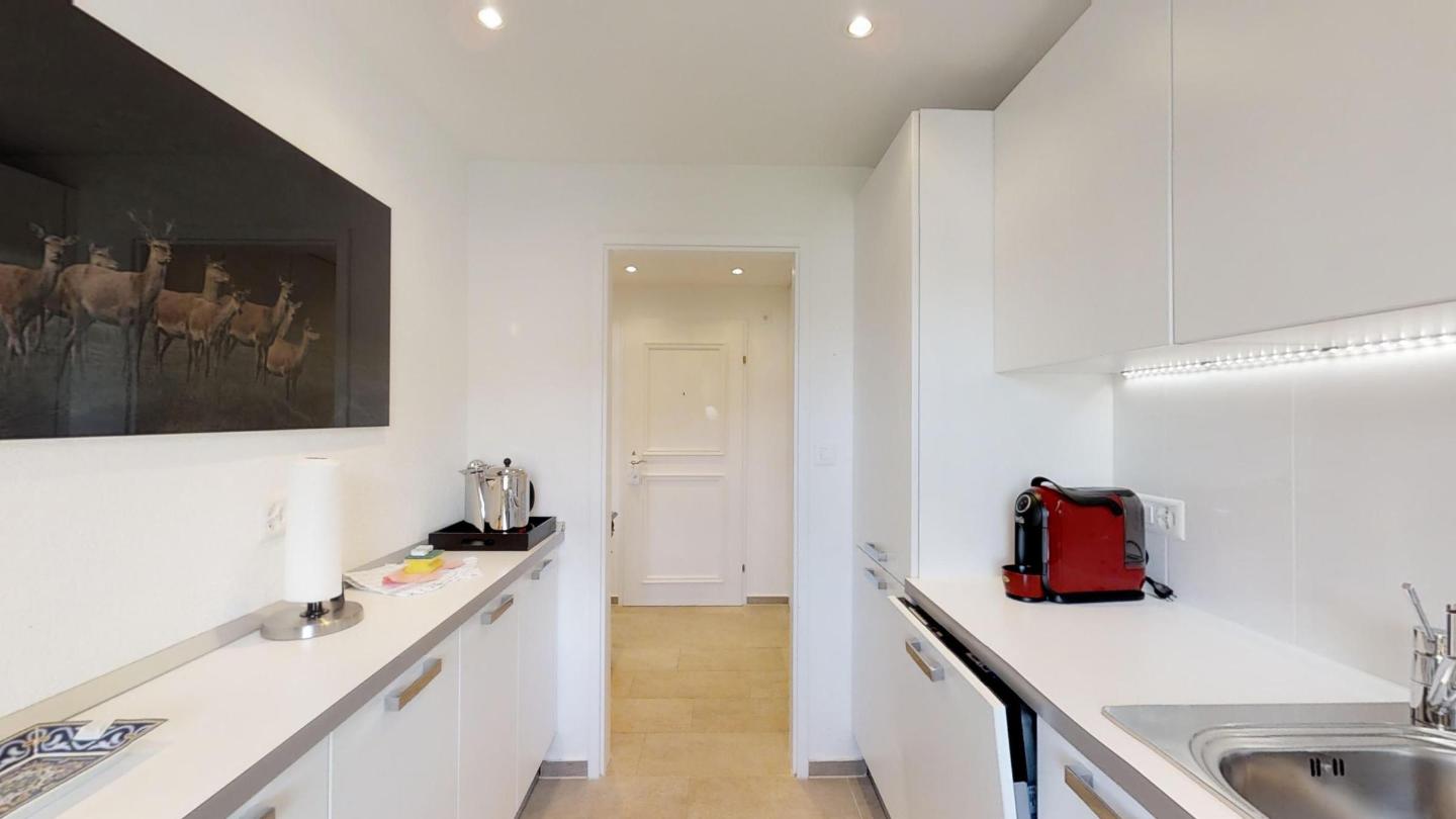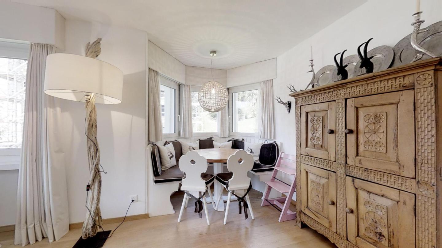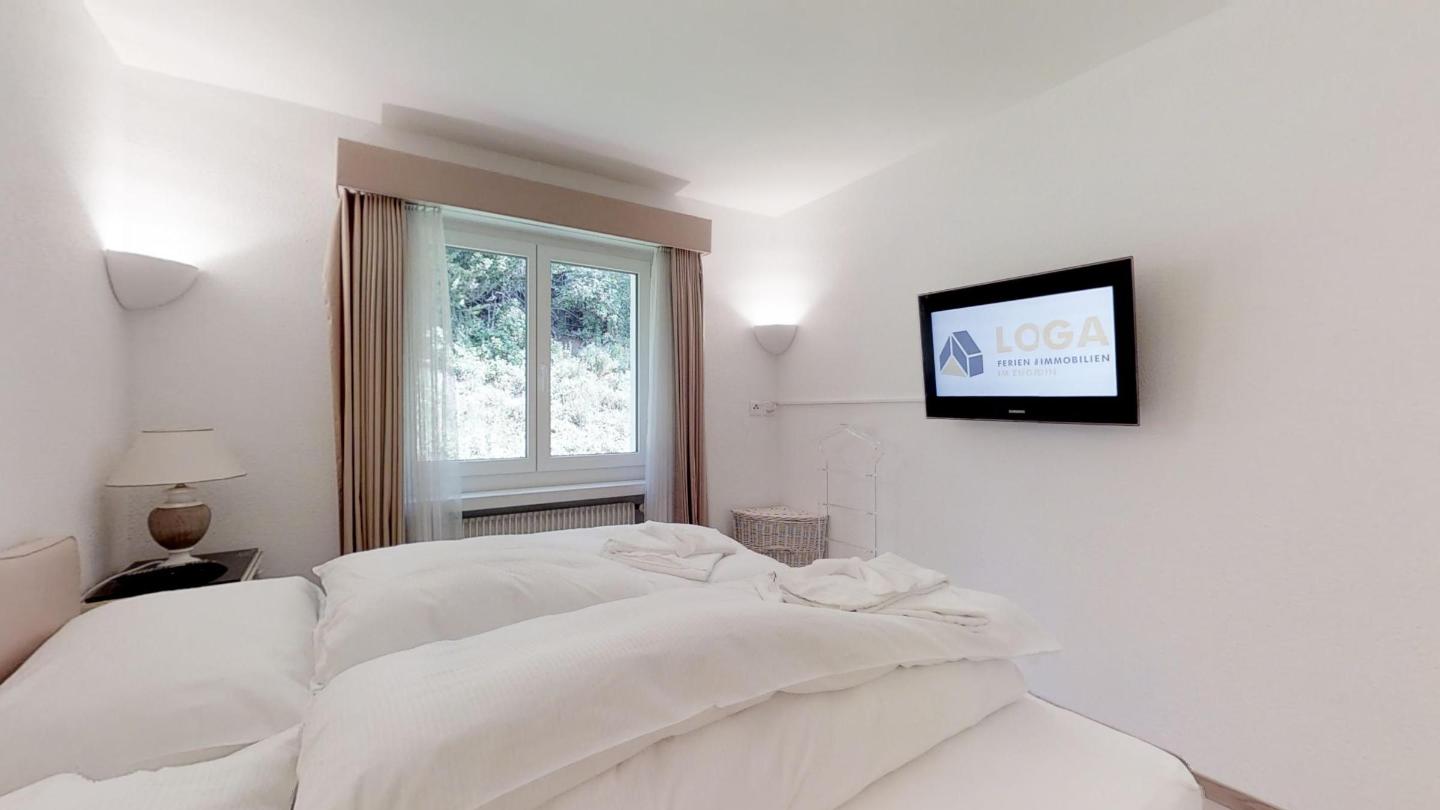 Moderne 3 ½ -Zimmerwohnung in der 1. Etage. Ca. 90 m2, an sehr sonniger und ruhiger Lage direkt am Waldrand. Eingang mit Garderobe. Helles Wohnzimmer mit gemütlicher Essecke und direktem Zugang zum Balkon mit Südlage und wunderschöner Bergsicht. 1 Doppelschlafzimmer mit TV. 1 Zimmer mit zwei separaten Betten und Zugang zu kleinem Balkon. Beide Schlafzimmer verfügen über elektrisch verstellbare Gesundheitsbetten. Badezimmer mit Wanne/WC/Lavabo. Geschlossene Küche mit Backofen, Kühlschrank und Geschirrspüler. Kaffeemaschine CHICCO D'ORO. Waschmaschine und Tumbler im Haus. 1 Garagenplatz. Haustiere sind nicht erlaubt.