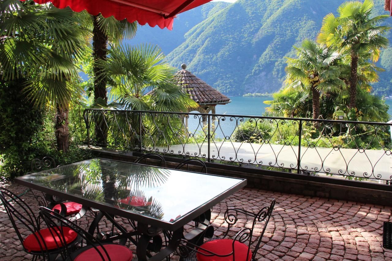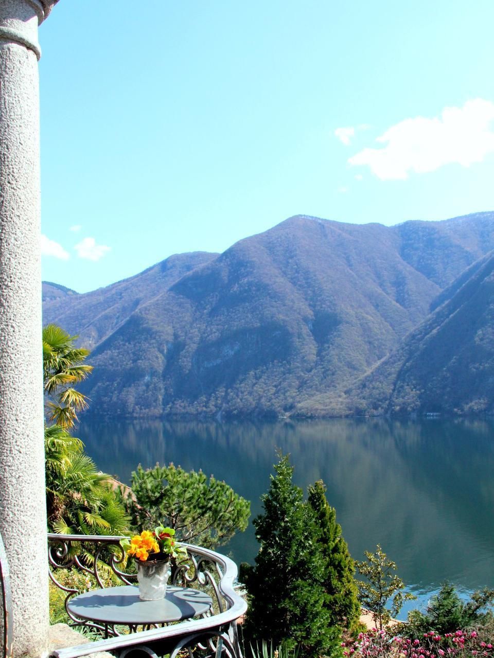 1 kl. Balkon + 1 kl. Terrasse (eingerahmt von Thuja + Palmen) mit Essplatz + Sonnenschirm.WiFi kostenlos. Gepflegte und komfortable Möblierung. Offener oder ueberdachter Parkplatz oder Garage disponibel. Traumhafter Blick auf Luganer See und Berge.